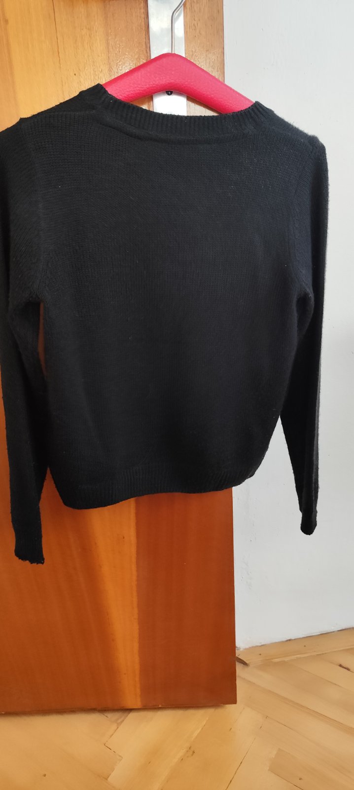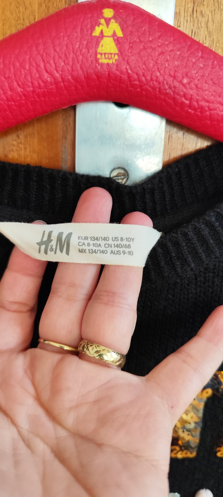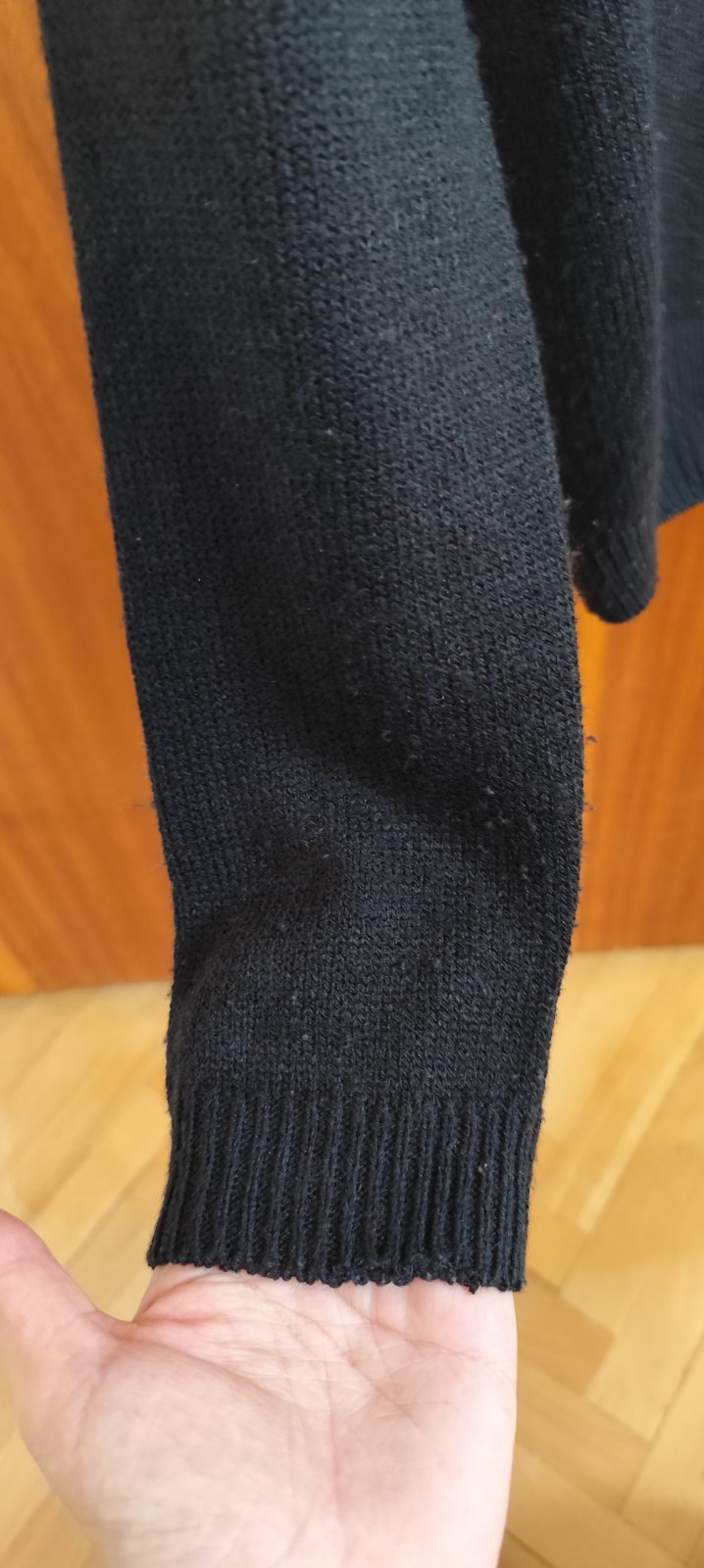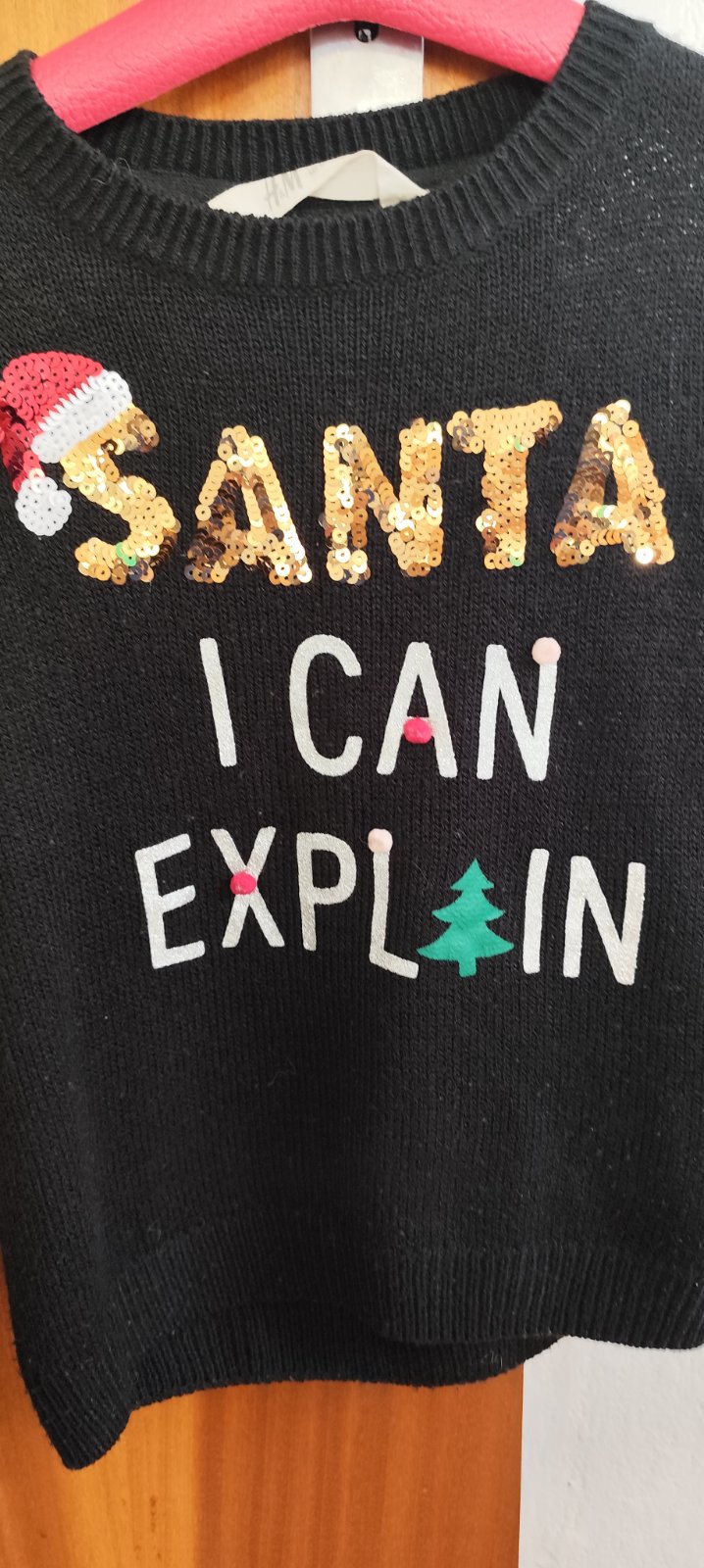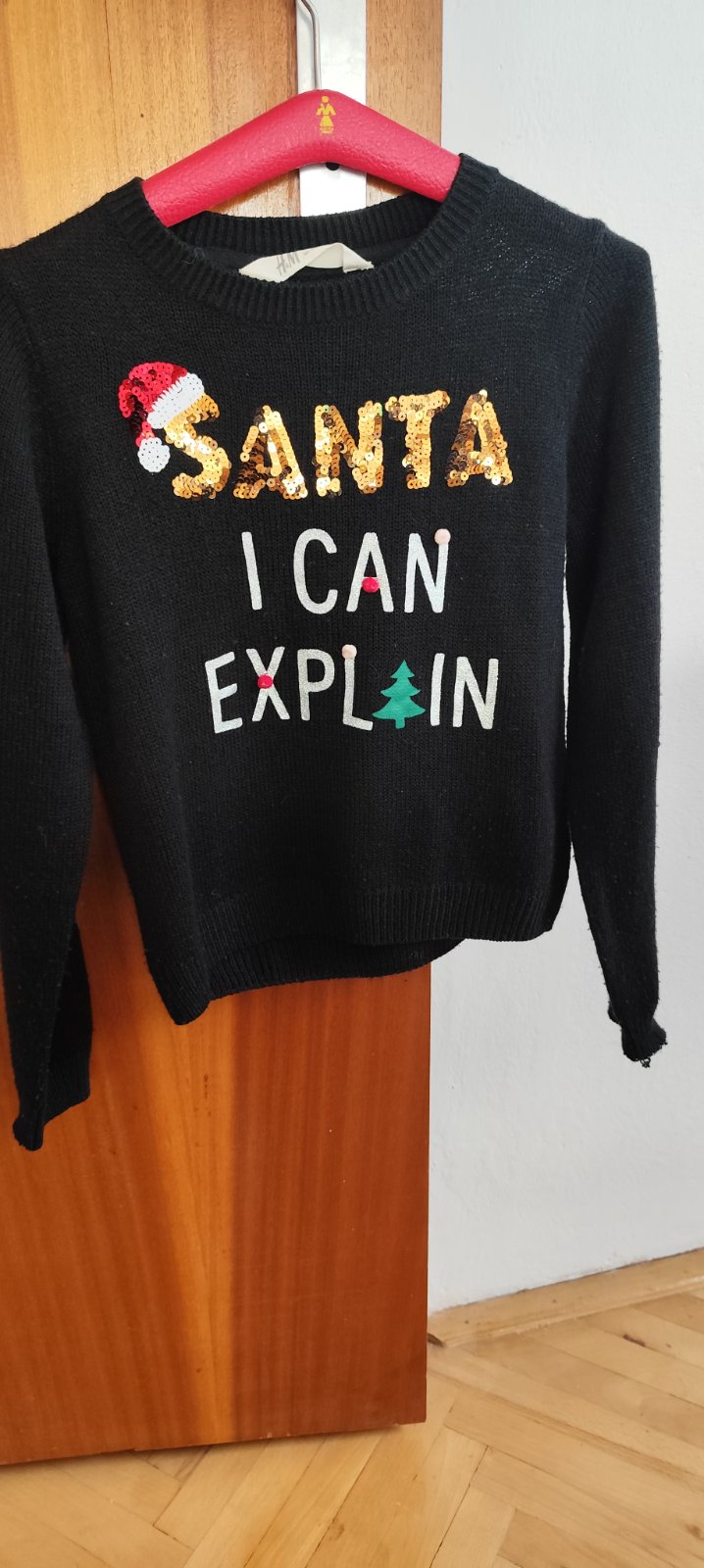 Predám pekný vianočný svetrík. Na jednom rukavku sa troška rozťahuju nitky, šikovná mamička si to vie stiahnuť s nitkou. Je to nafotené. Inak bežné nosený stav, nevidím poškodenie.