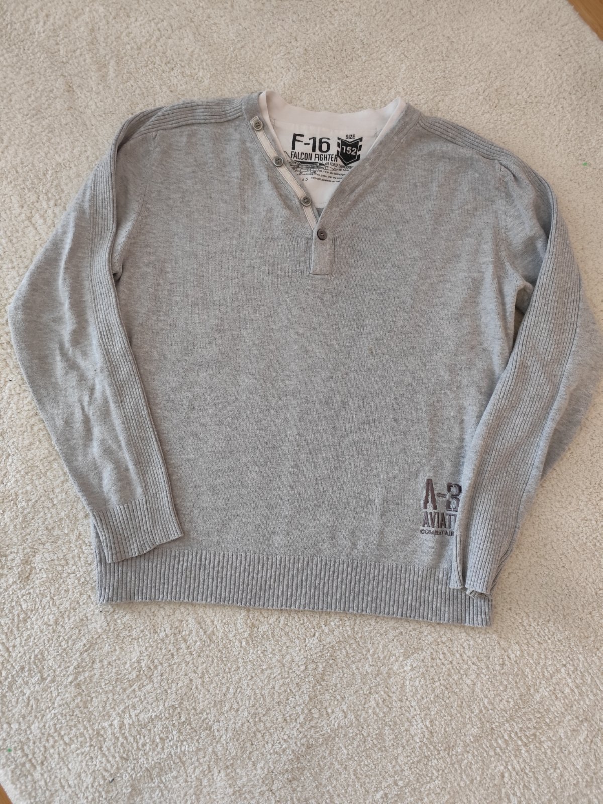 Predam chlapcensky pulover, skvely materiál, farba je nieco medzi horcicovo-olivovou. Syn ho rad nosil.
