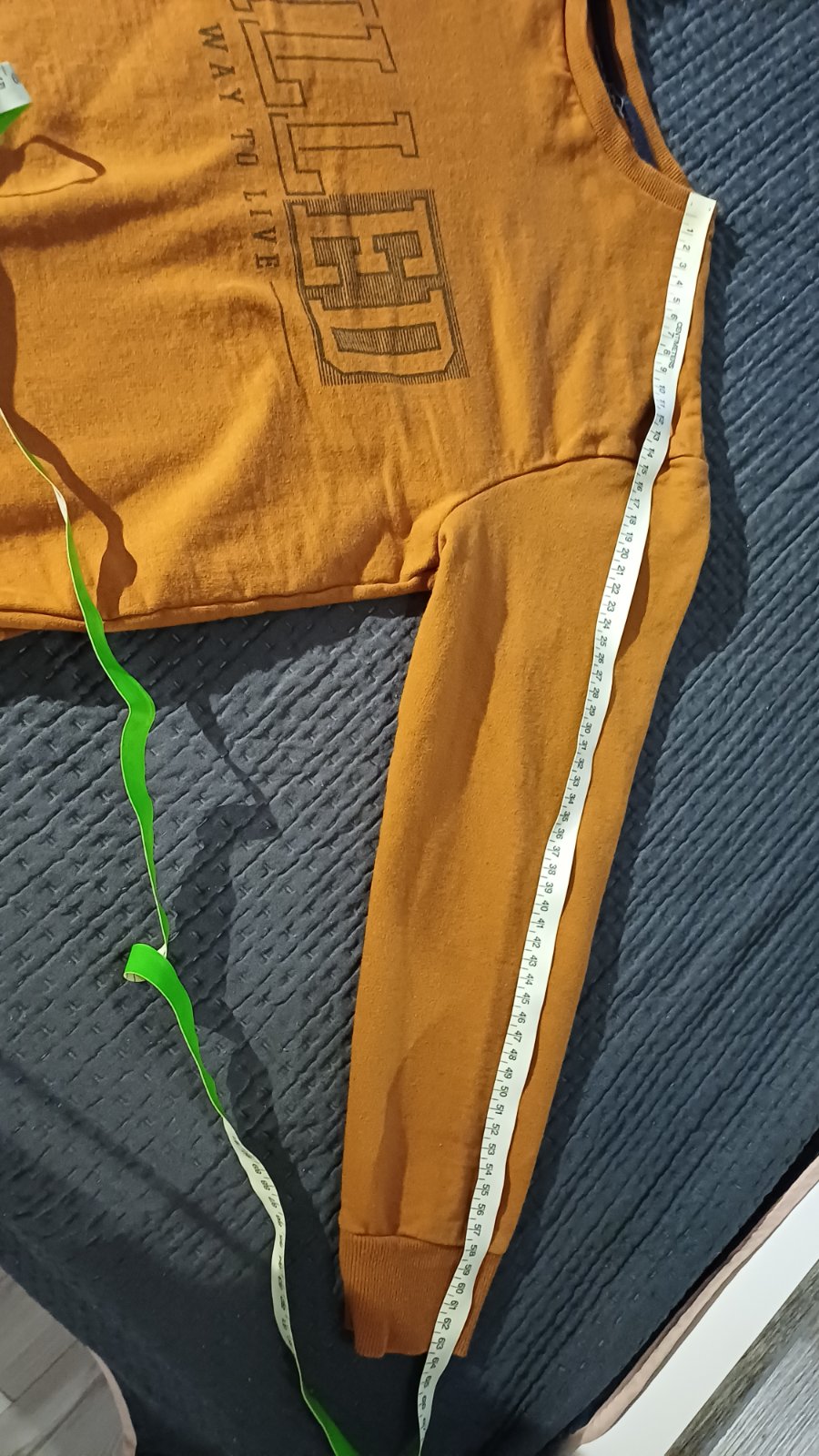 158/164. Dĺžka je 56 cm a rukáv od krku je 57 cm.