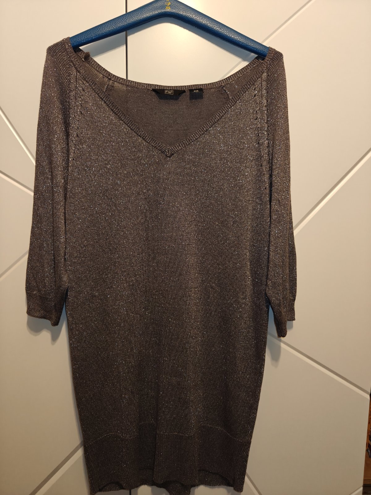 Predám. Raz oblečené. Malé vytiahnuté miestečko viď fotka aj rozmery. Farba: sivo - strieborné lesklé. Len stálo v šatníku