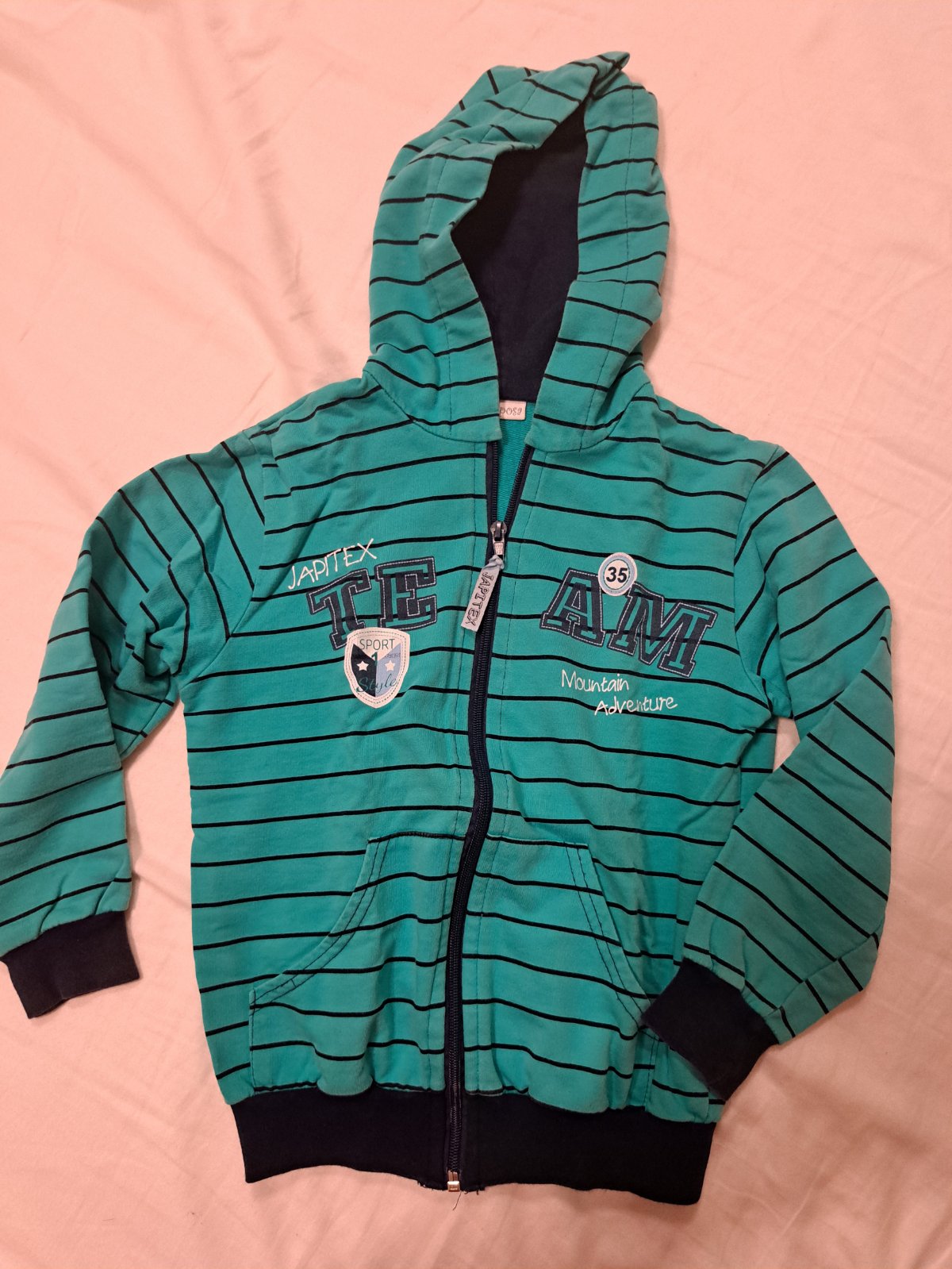 Pekná petrolejová mikinka, pár krát oblečená (syn mal inú obľúbenú) Vnútro nie je česané, dobre kombinovateľná.