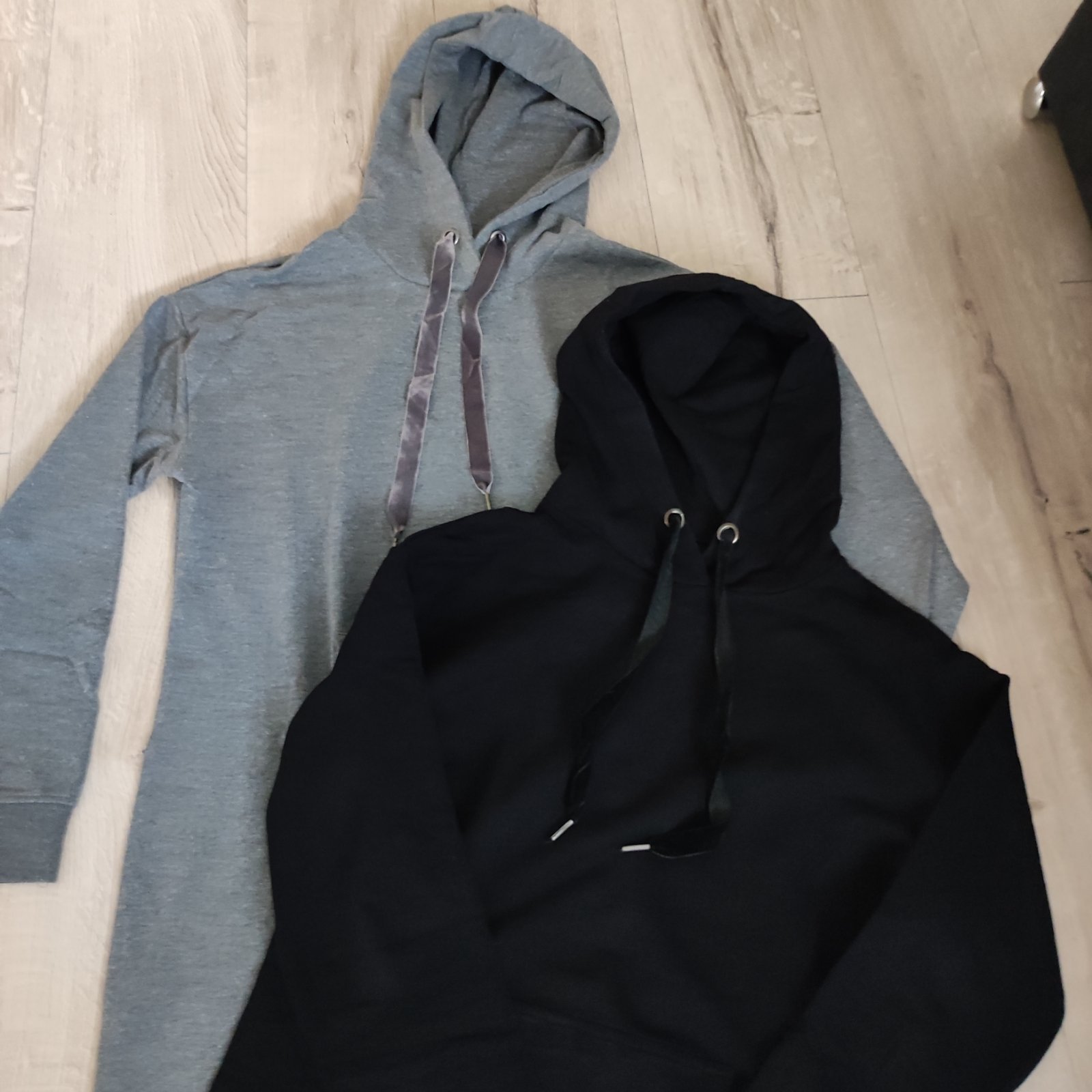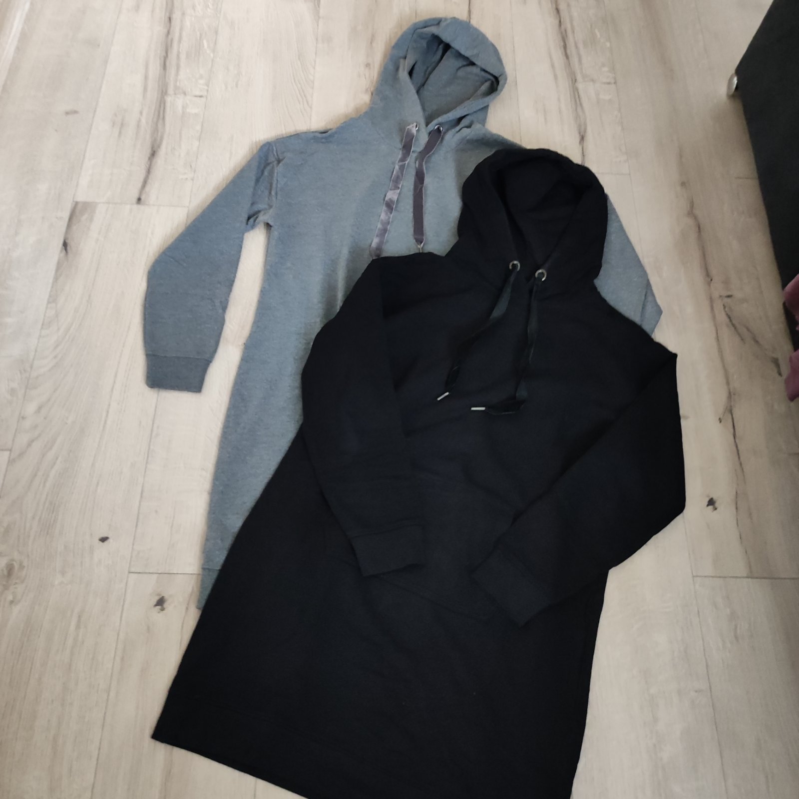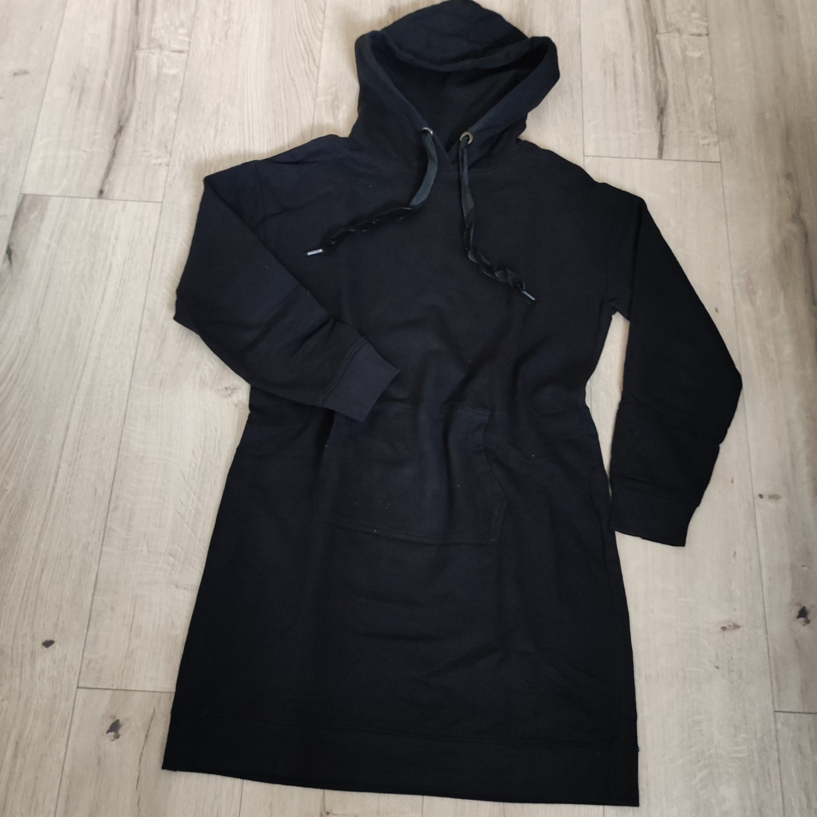 Oblečená len raz,veľkosť 36/38,dĺžka 85 cm,šírka 51 krát dva,má klokanie vrecko,mám aj sivú v tejto veľkosti