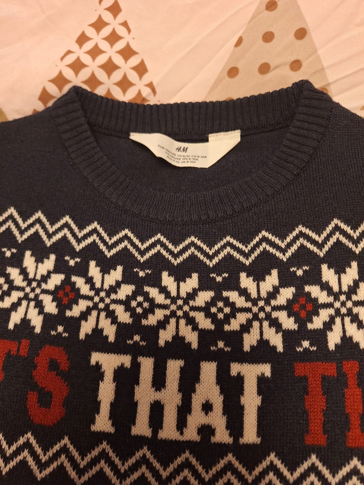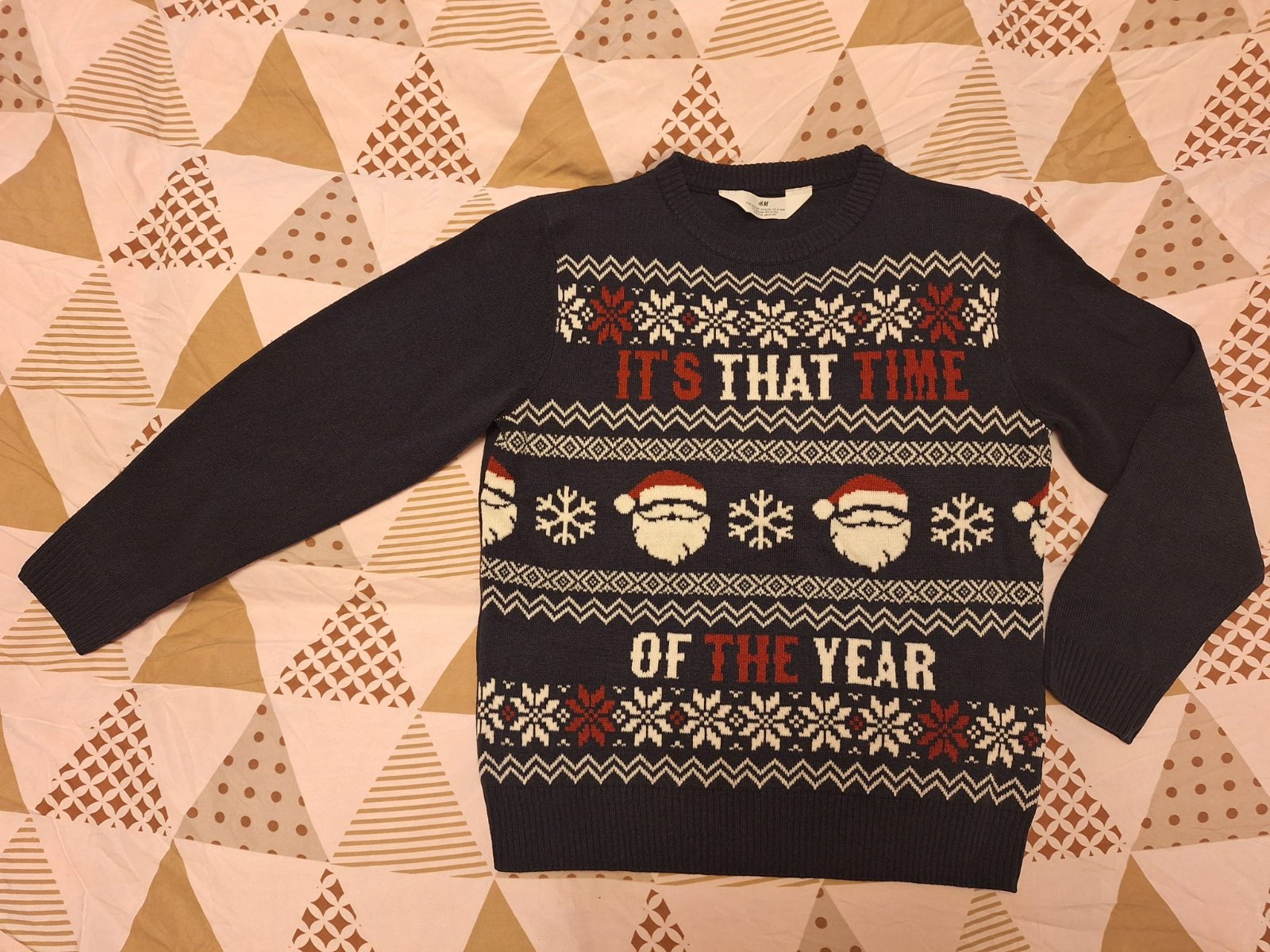 Posuvam tenky svetrik s vianocnym vzorom znacky HM velkosti 134/140, ziarive farby, malo noseny, darcek zdarma