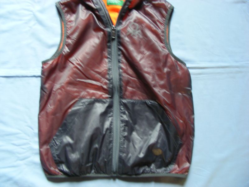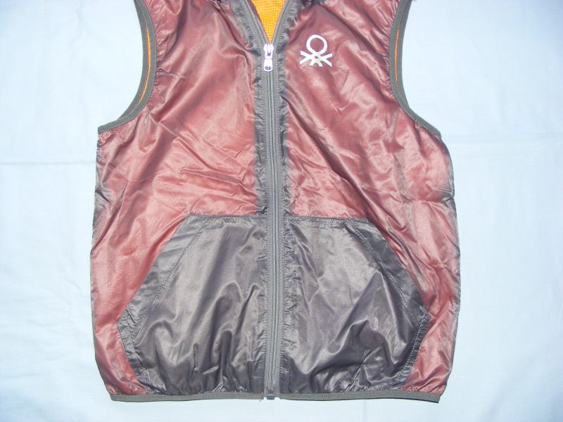 Tenká vesta s kapuckou zn. Benetton, podšitá sieťovinou, zapínanie na zips, funkčné vrecká.