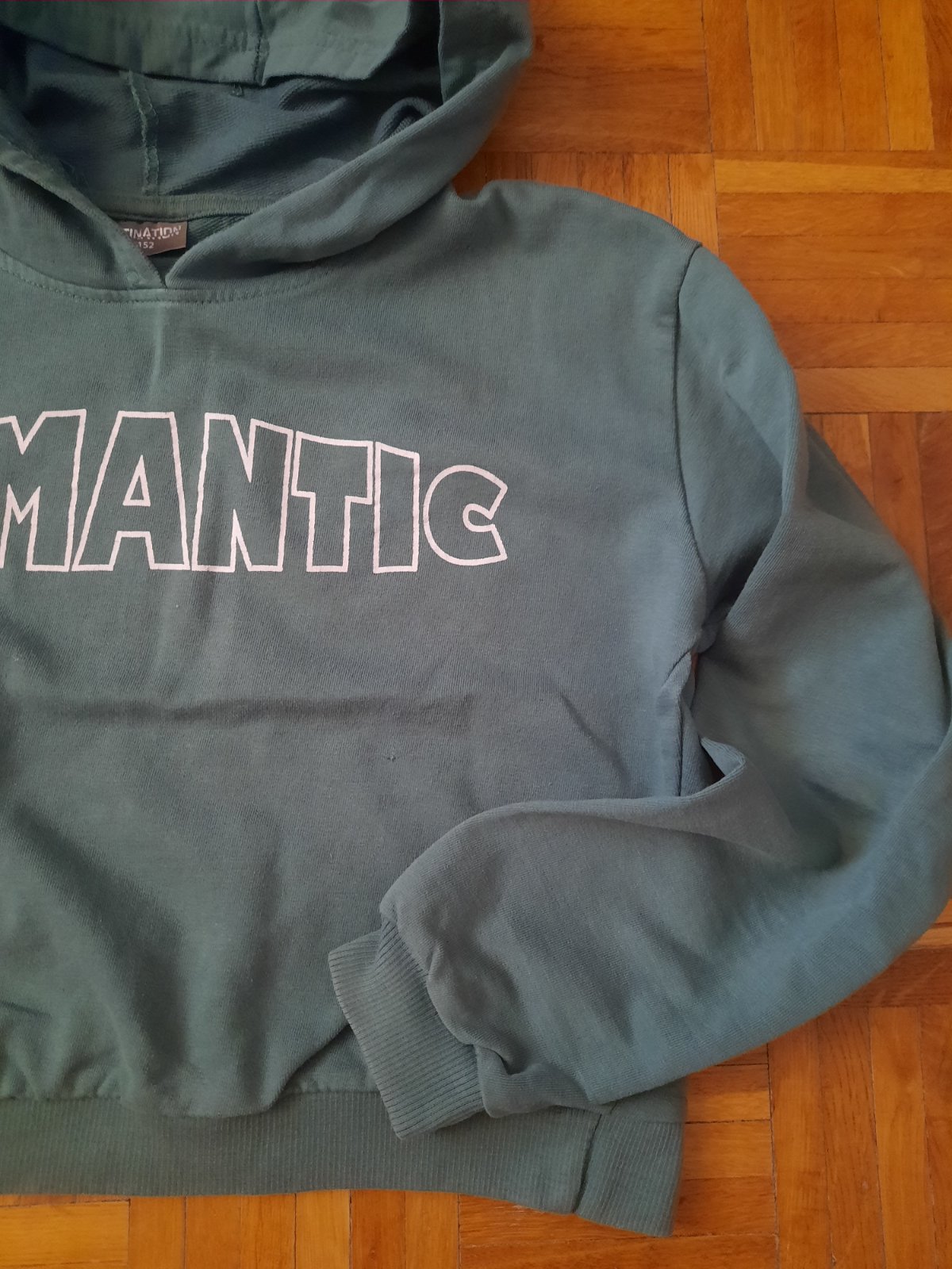 Krásna cropnutá bavlnená mikina s kapucňou. Materiál je ako teplákovina. Výborný stav. Zaujímavá farba- tyrkysová do zelená.