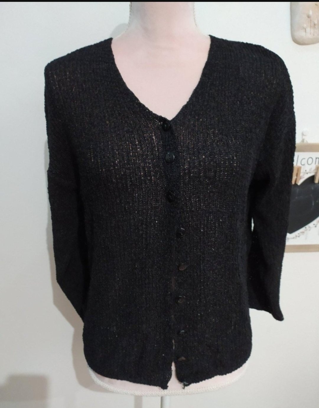 1 x oblečený krásny, dlhší, elastický svetrík s flitrami v top stave, veľkosť M/L. 45% bavlna, 45% vlna,10% elastan. Cez prsia 36,5 cm, dĺžka 67 cm. Kuk aj ostatné moje inzeráty. 8€ + pošta