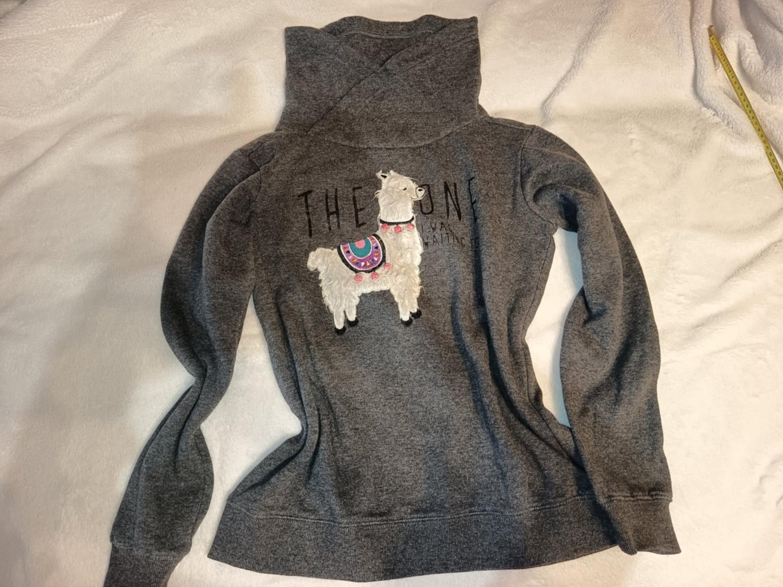 Teplá mikina, nosená málo, ale na lame sa hlavne praním oškreli tie ružové dekorácie, vid foto.