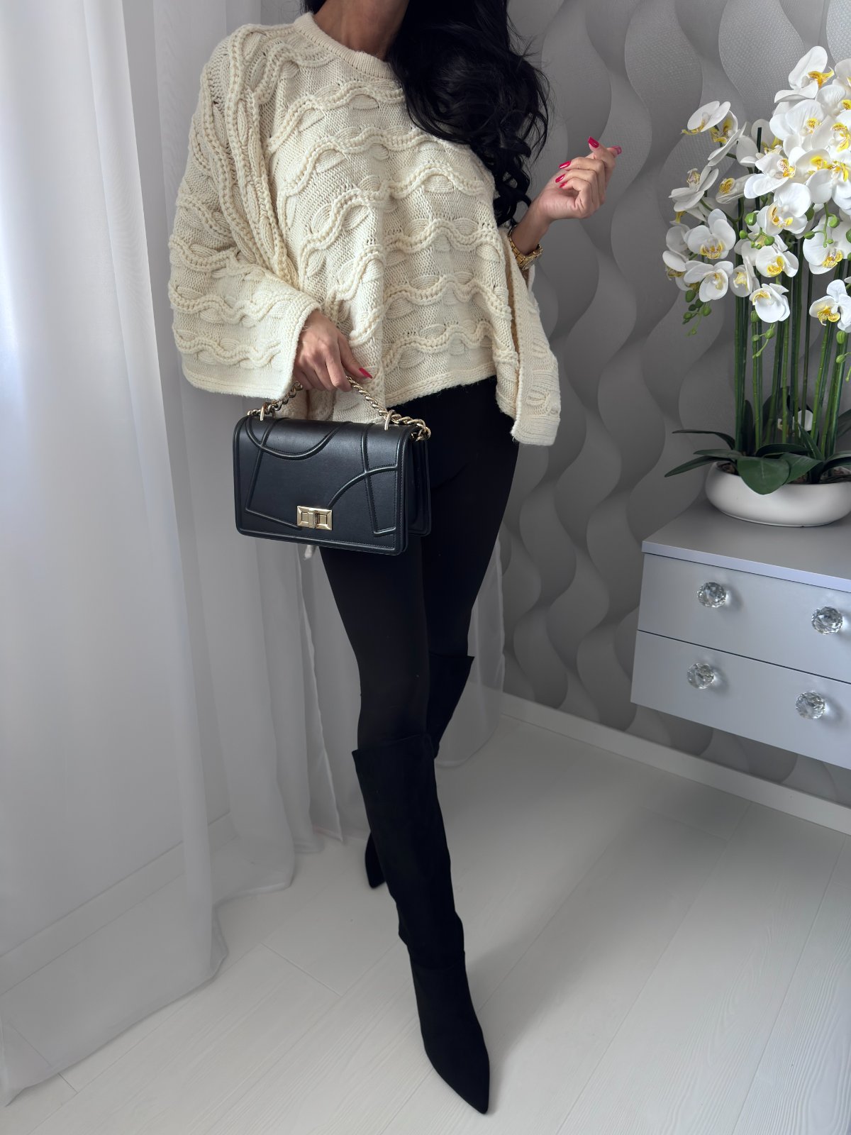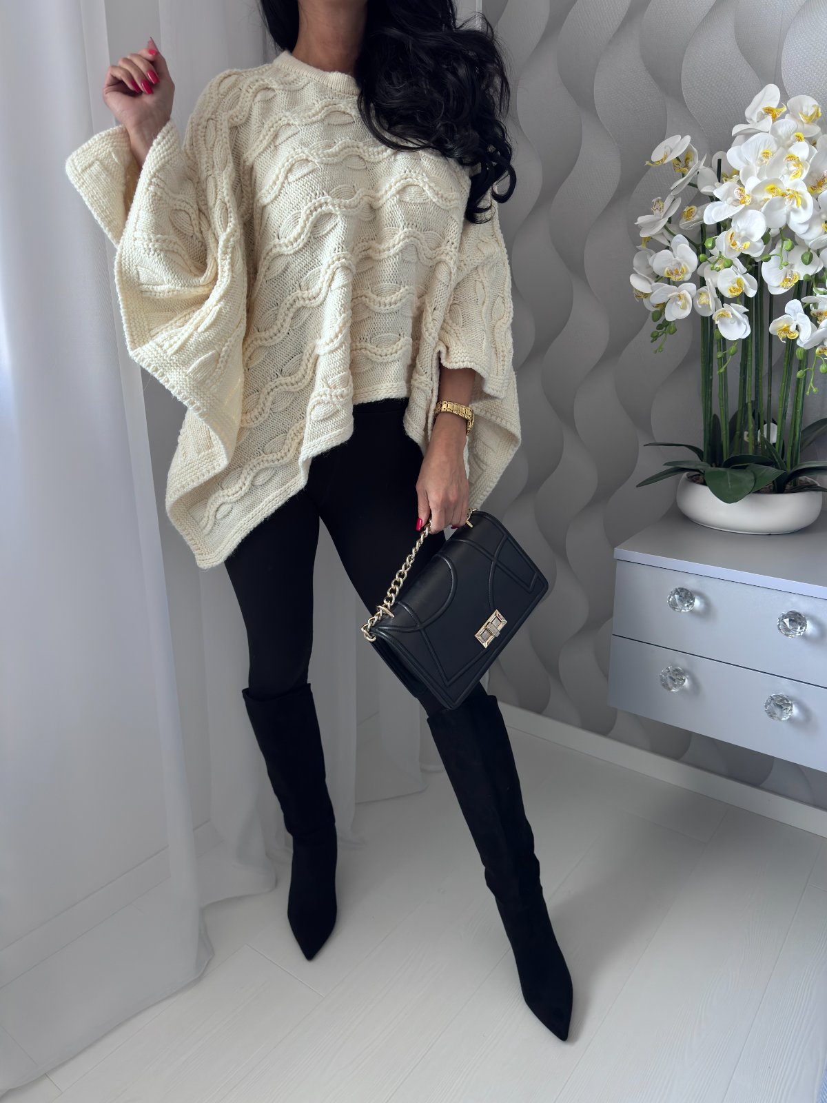 Smotanové pletené pončo / pelerína.