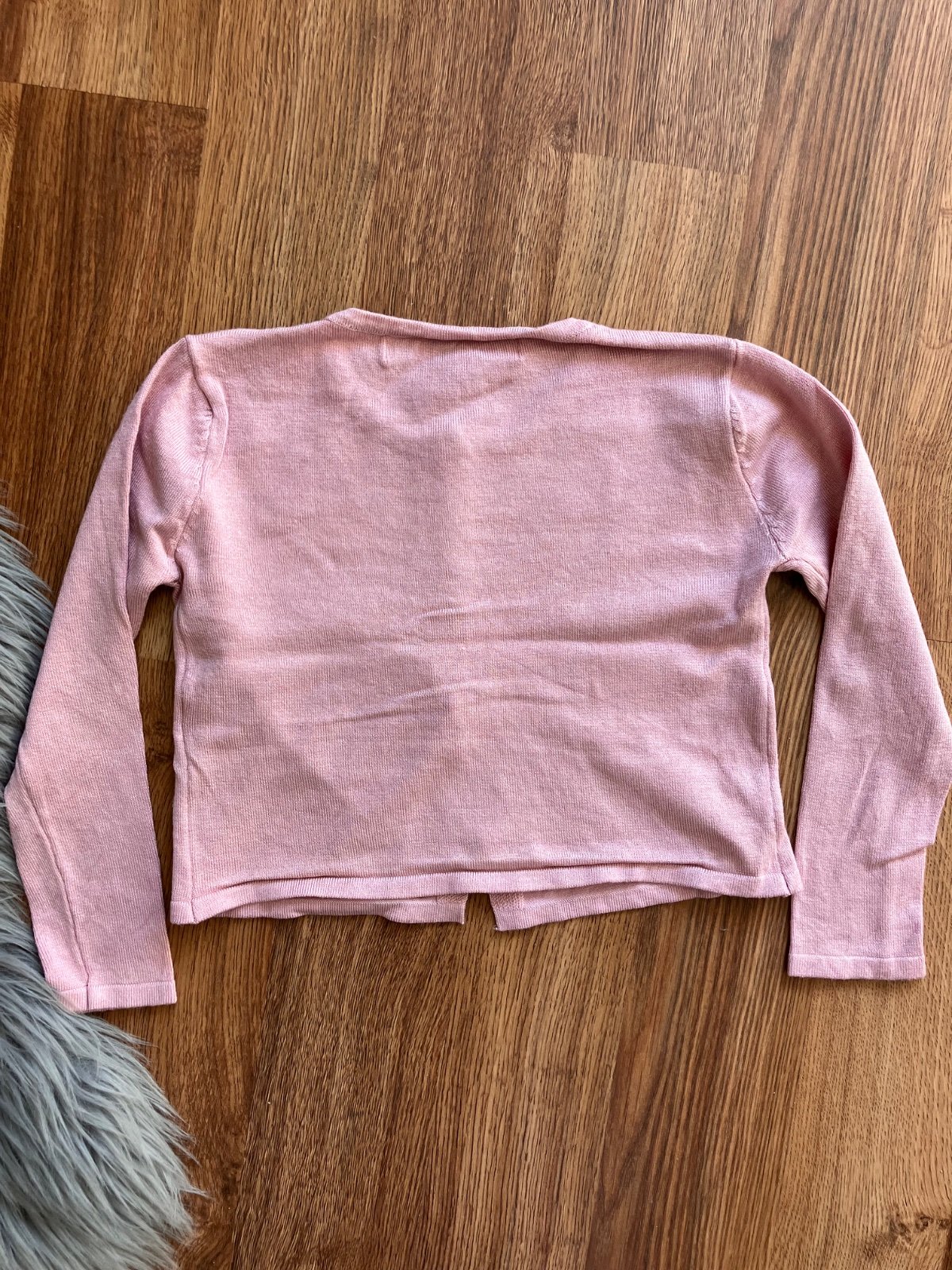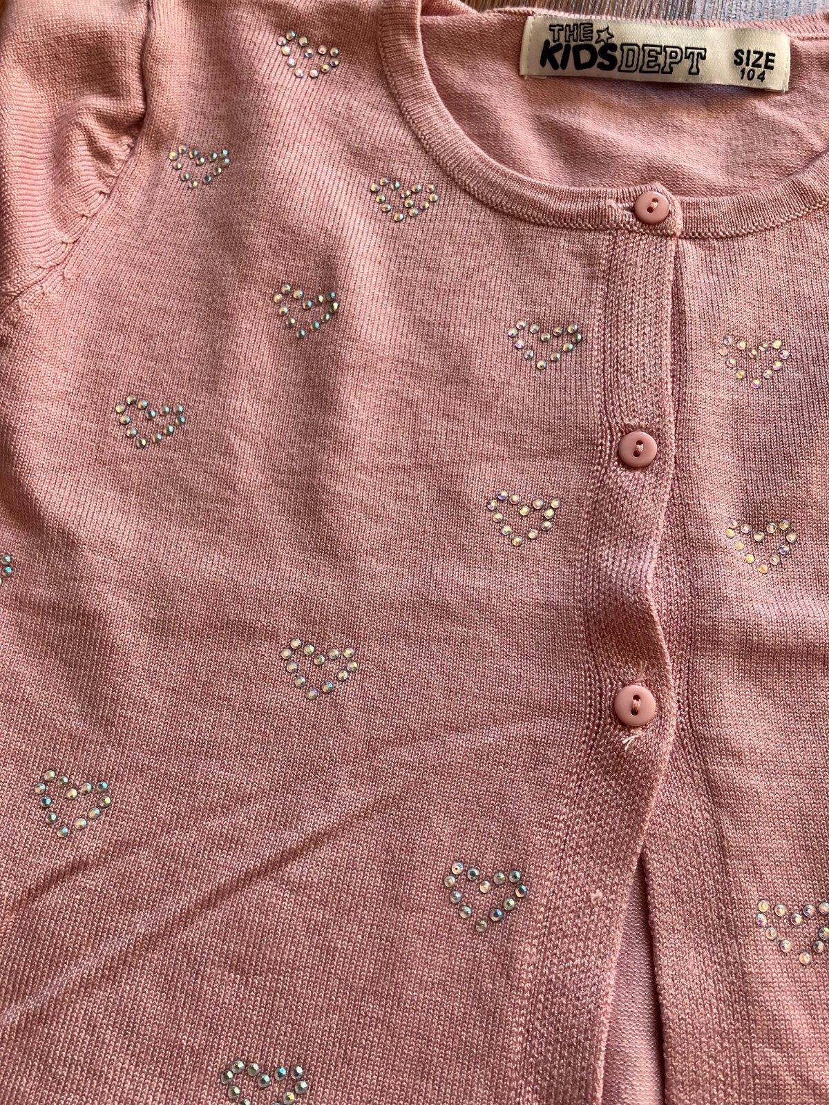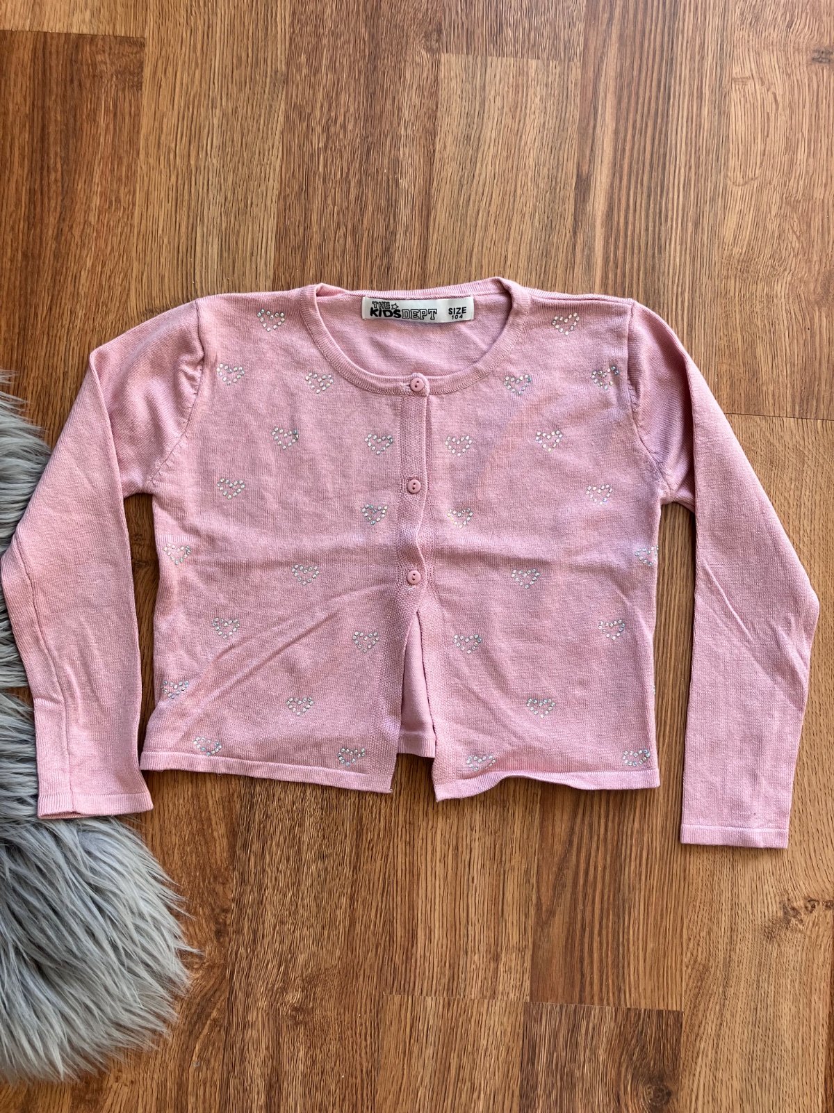 Dievčenský sveter so srdiečkami a kamienkami, zapínanie na tri gombíky, elastický, materiál 80%viskóza,20%elastan.
