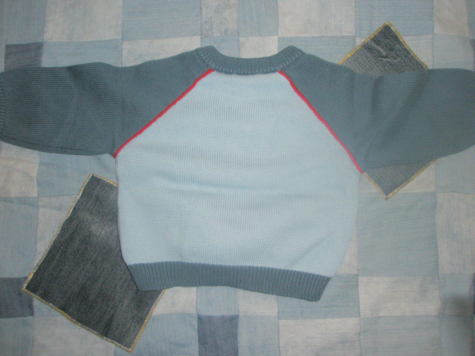 Bledomodry svetrik s tmavomodrymi rukavmi, dobry noseny stav