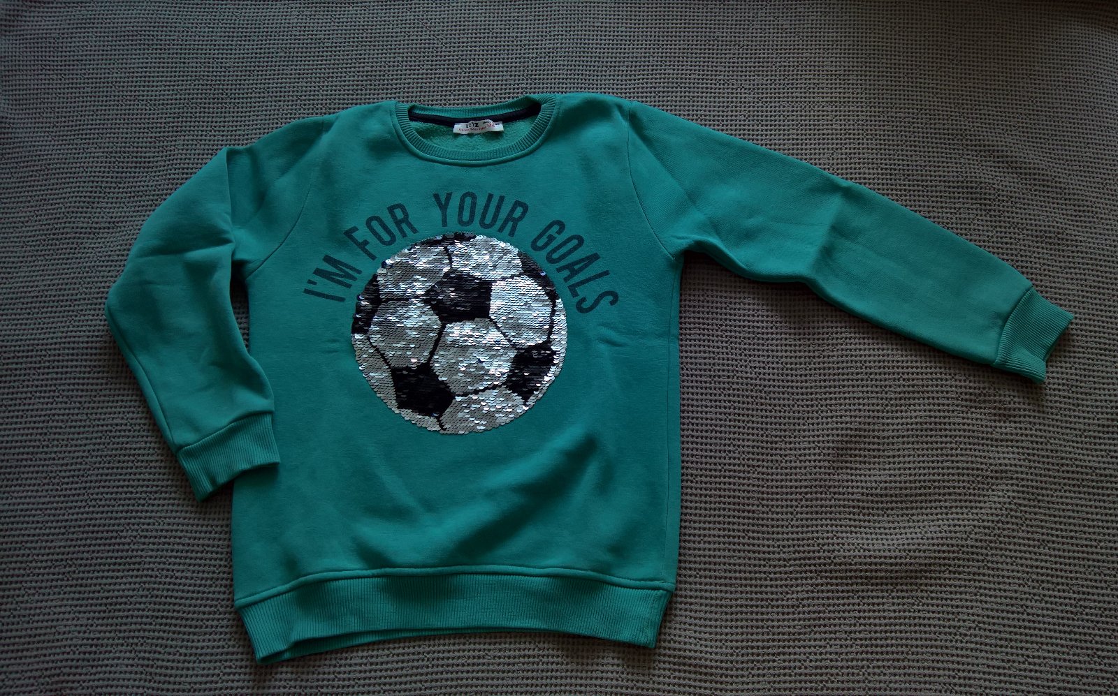 Mikina futbal s pretáčajúcimi flitrami v dobrom stave, má jemný chĺpok z prania.