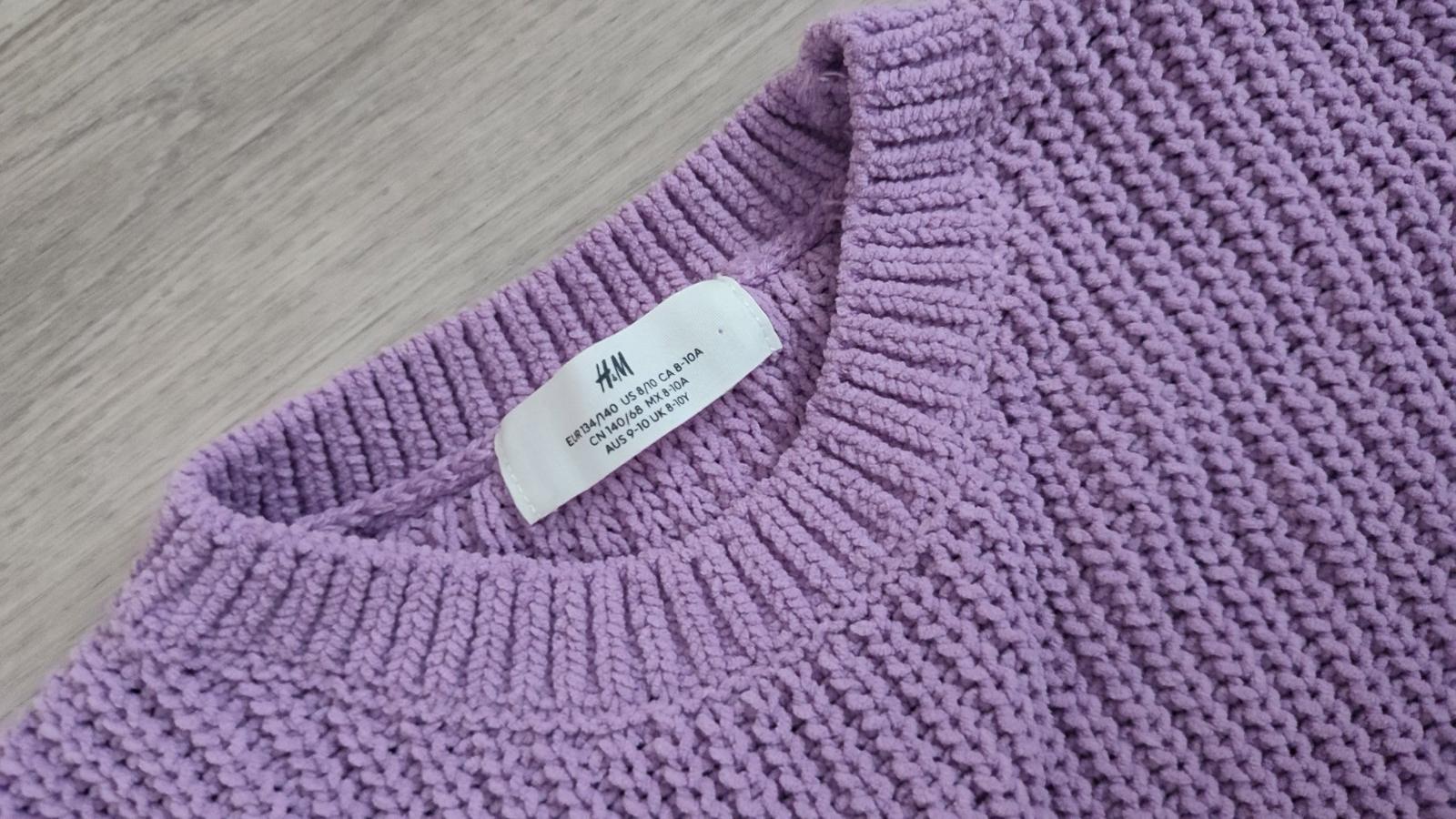 nosený, bez poškodení farba je fialová, ale neviem to lepšie odfotiť veľkosť uvedená výrobcom 146/152, ale sveter je menší šírka cez prsia 2x 33 cm dĺžka 47 cm rukáv od krku 45 cm, myslím, že mal ...