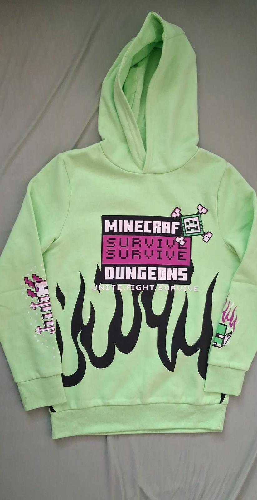 svetlo zelená mikina Minecraft, zateplená, F&F, veľkosť 11-12 rokov, 1x oblečená, teda ako nová, rukáv 58 cm, dlžka mikiny 64 cm, cena 17 €