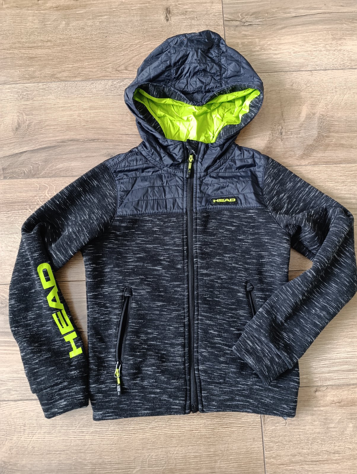Pekný stav.. vhodná ako aj vrchná bunda aj mikina. Nieje hrubá ale tepla. Kapucňa šušťak. Písaná 128/134. Ale určite menšia. Táto značka má menšie veci.