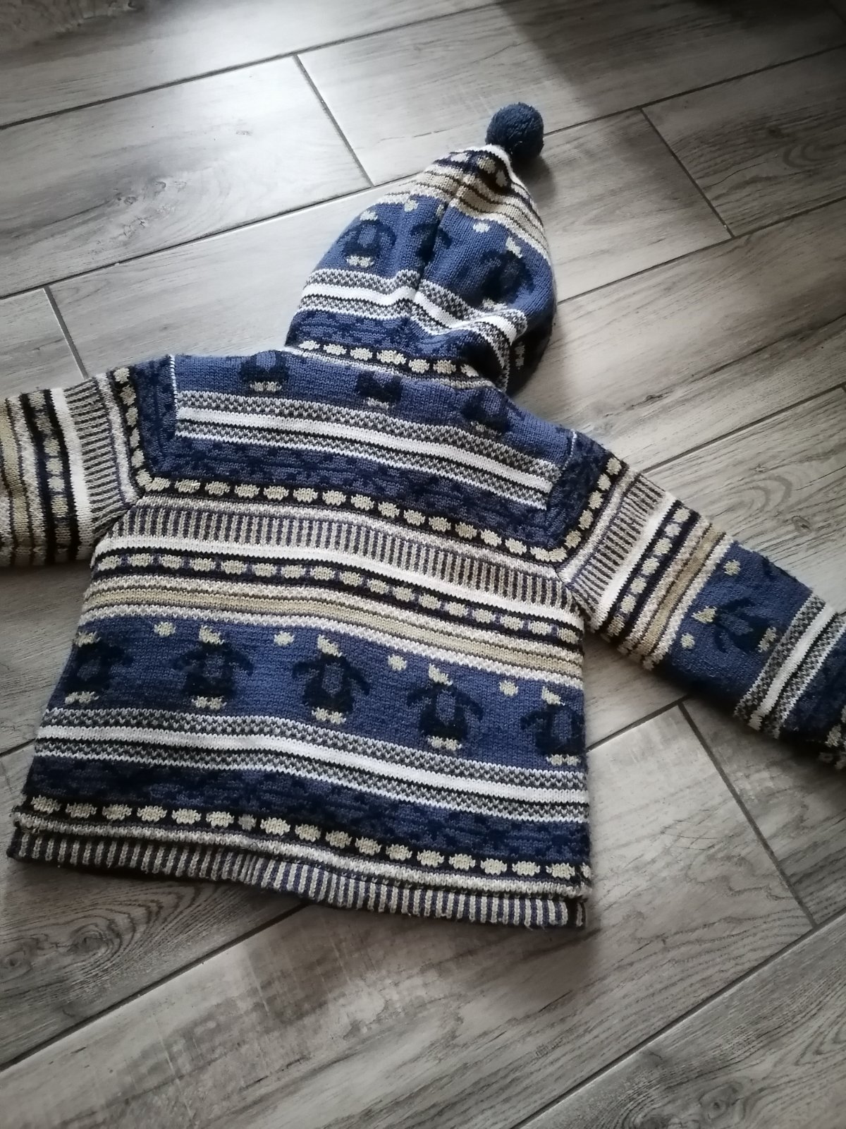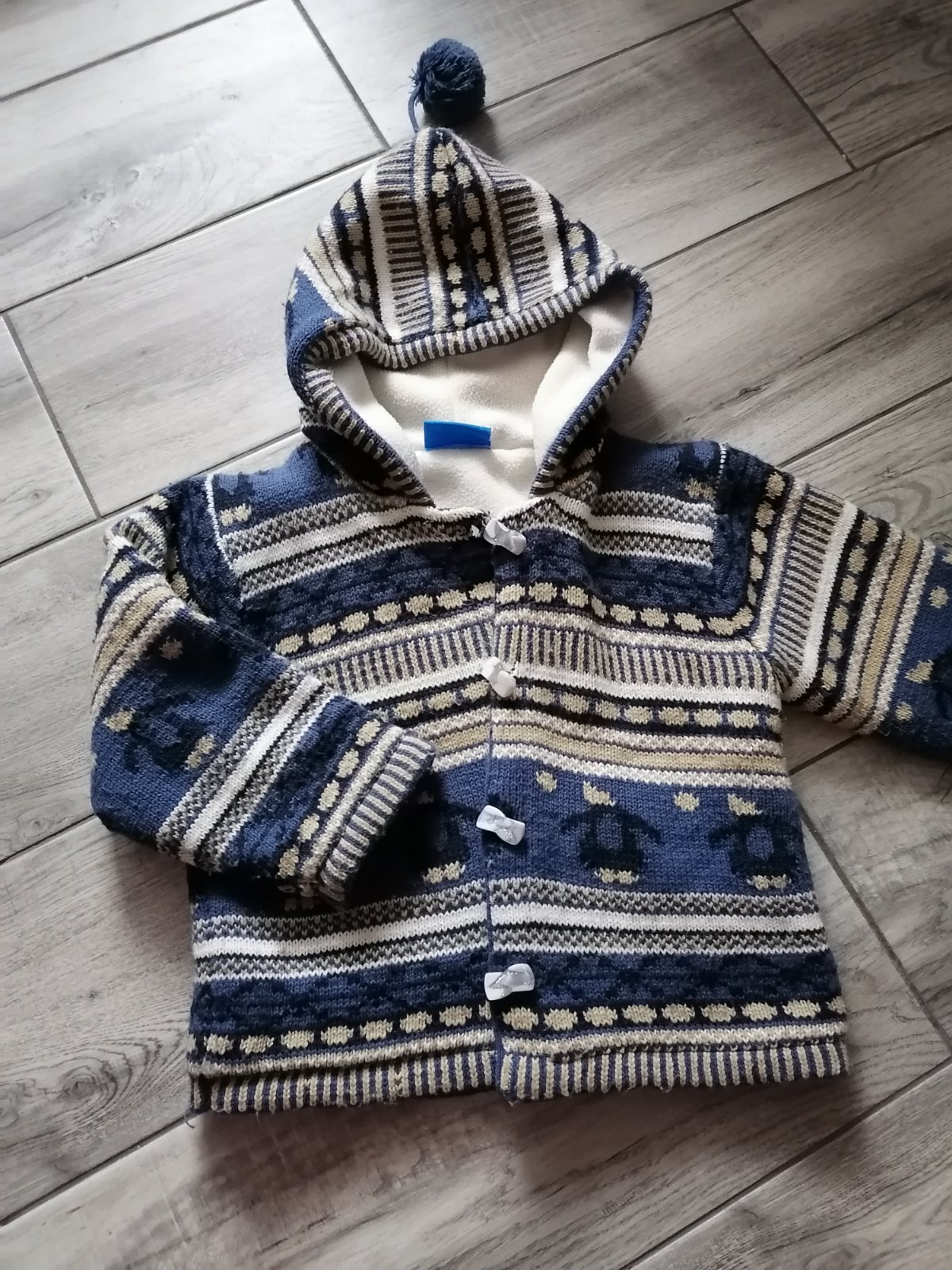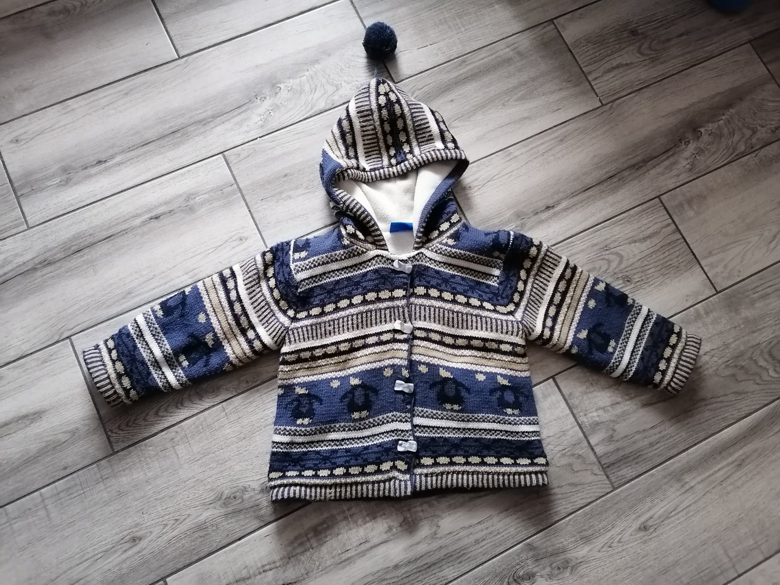 V peknom zachovalom stave, trošku chĺpok z prania. Určite ešte poslúži, super teplučký.