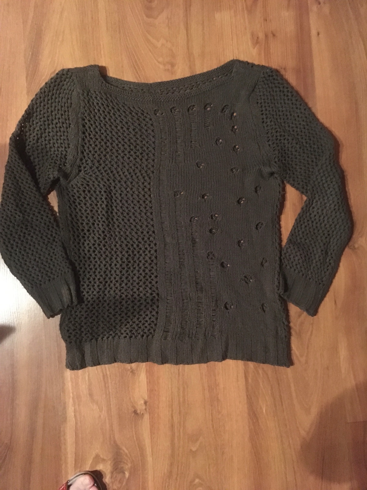 Made in Italy. Veľkosť nie je písaná, ja som to nosila, keď som bola XS ako mierne oversize sveter.