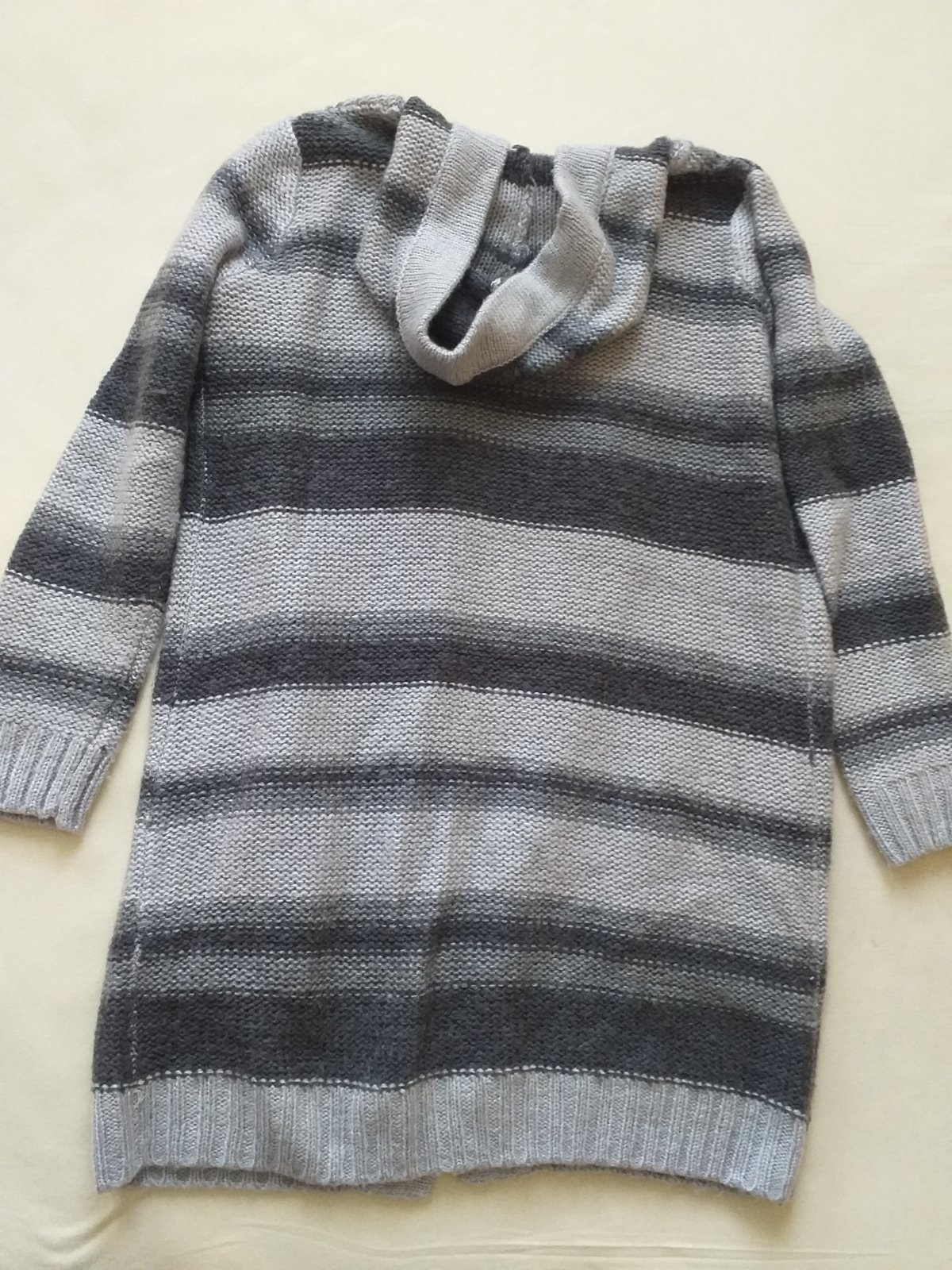 Pletený dlhý sveter/kardigán M/L sivý pásikavý