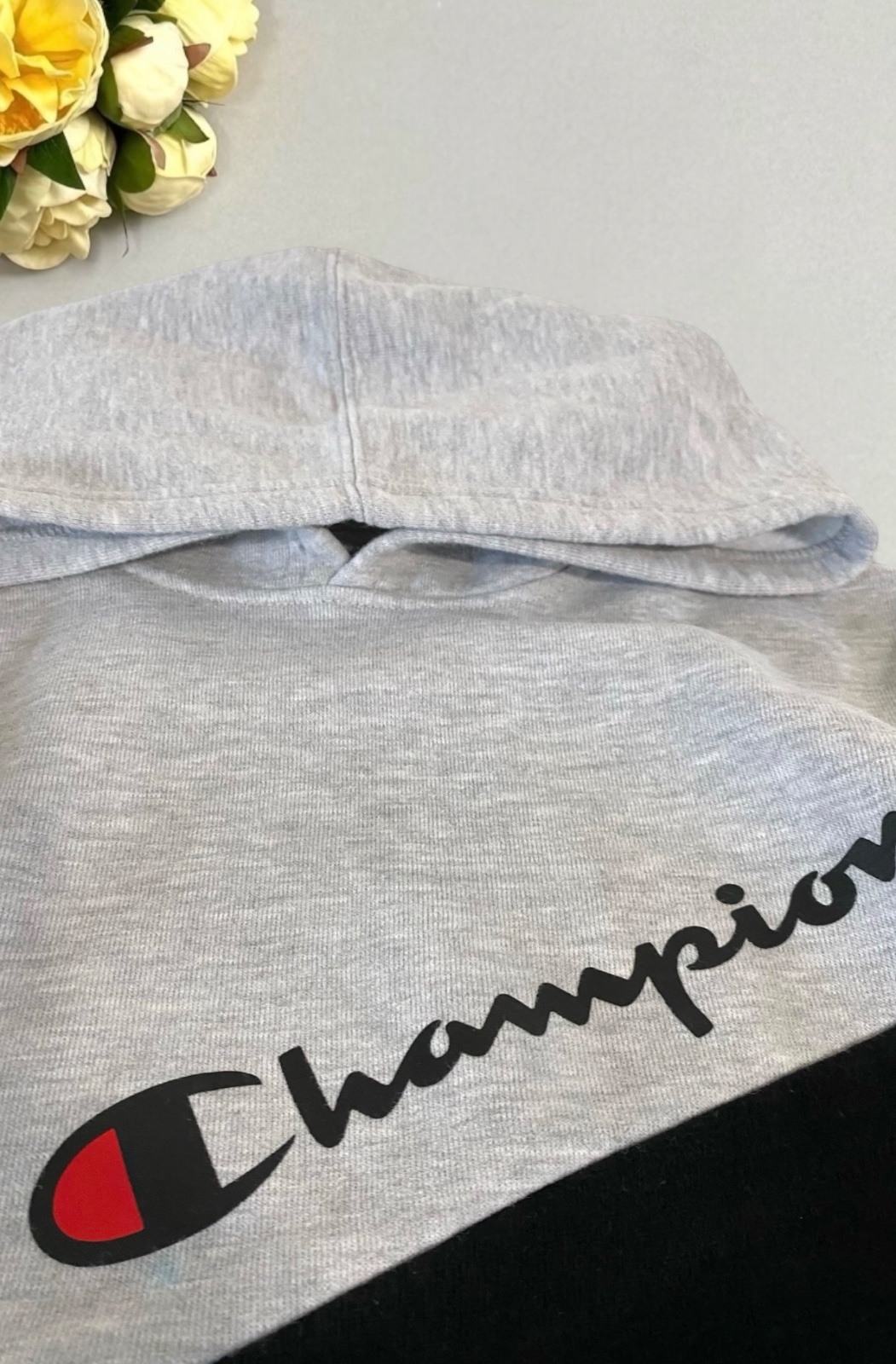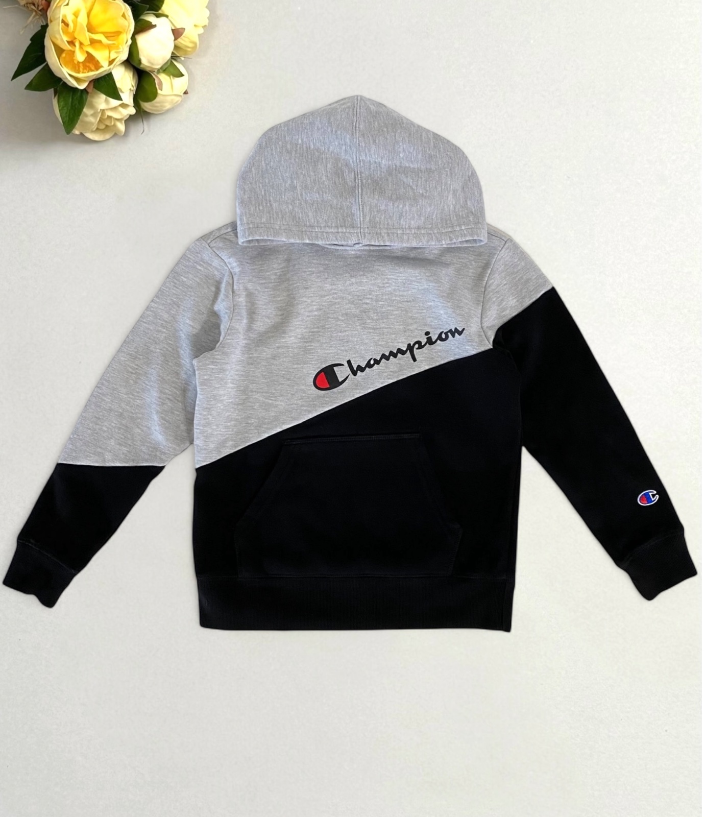 Champion chlapčenská mikina s kapucňou v dobrom stave bez poškodenia. Mierne známky bežného použiťia.