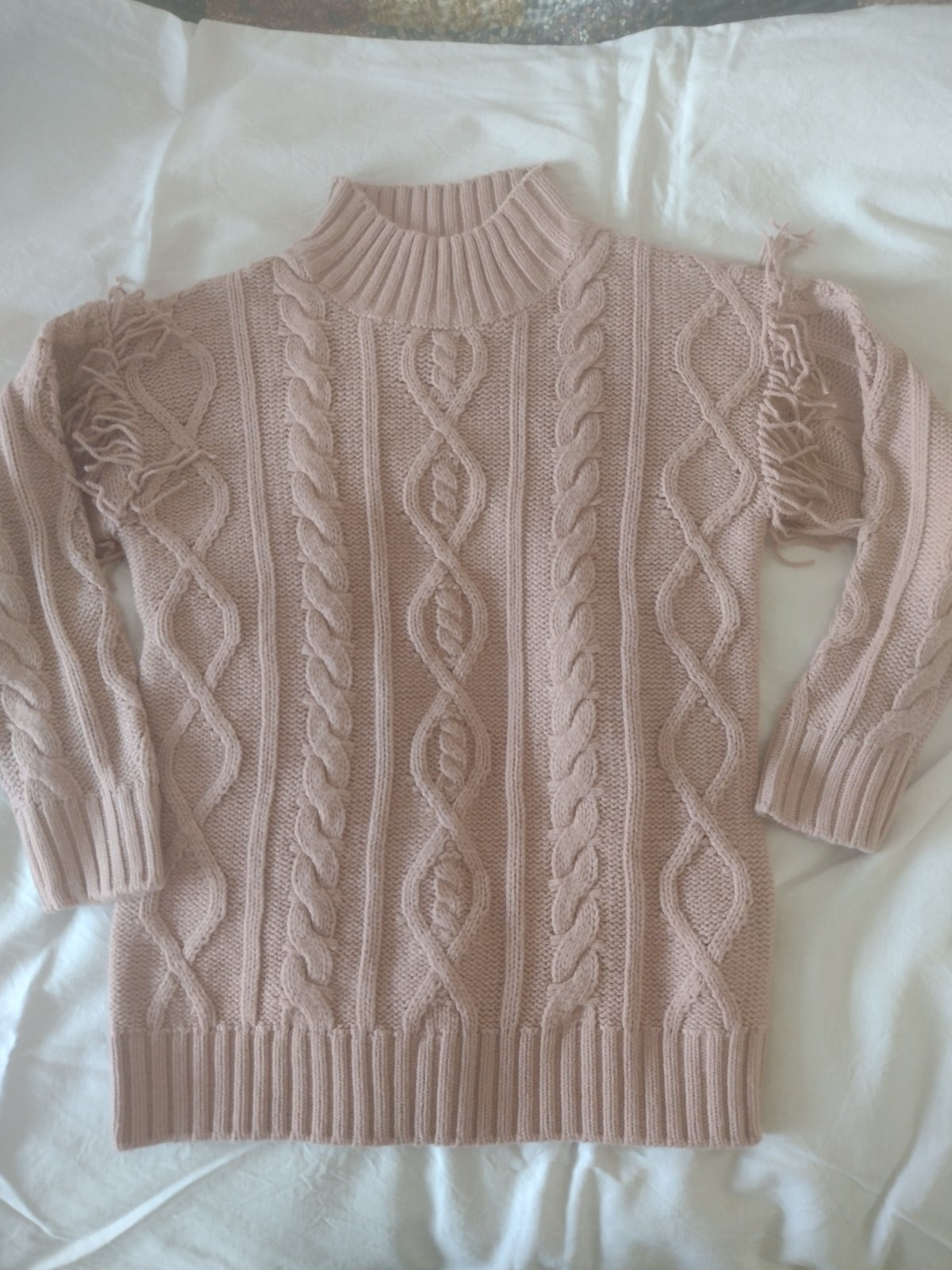 Predám veľmi málo nosený pulóver staroružový farby, snažila som sa farbu odfotiť, ale veľmi mi to nejde. Je vo výbornom stave bez poškodení. Je hrubý. V prípade záujmu premeriam.