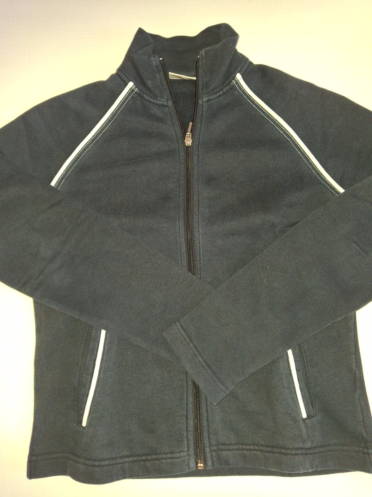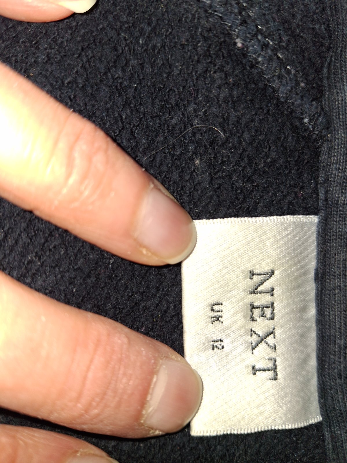 Predám málo nosenú mikinu čiernej farby, NEXT, 40, raglan rukávy, s bielym lemovaním okolo rukavov aj vreciek, zapínanie na zips ,bez kapucne, vrecka voľné bez zapínania. 100%bavlna, váha 375g.