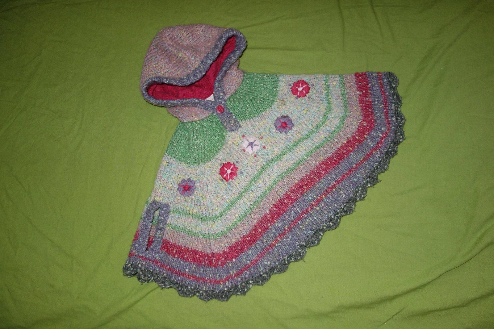 Krasne ponco vo velmi dobrom stave. Kedze obsahuje vlnu, pri prani sa mi trosku zrazil. Velkost je uvedena ako 12-24mesiacov, ale tym, ze je zrazene, tak je o cislo mensie. Ma aj otvory na ruky. Obsahuje 50% vlny.