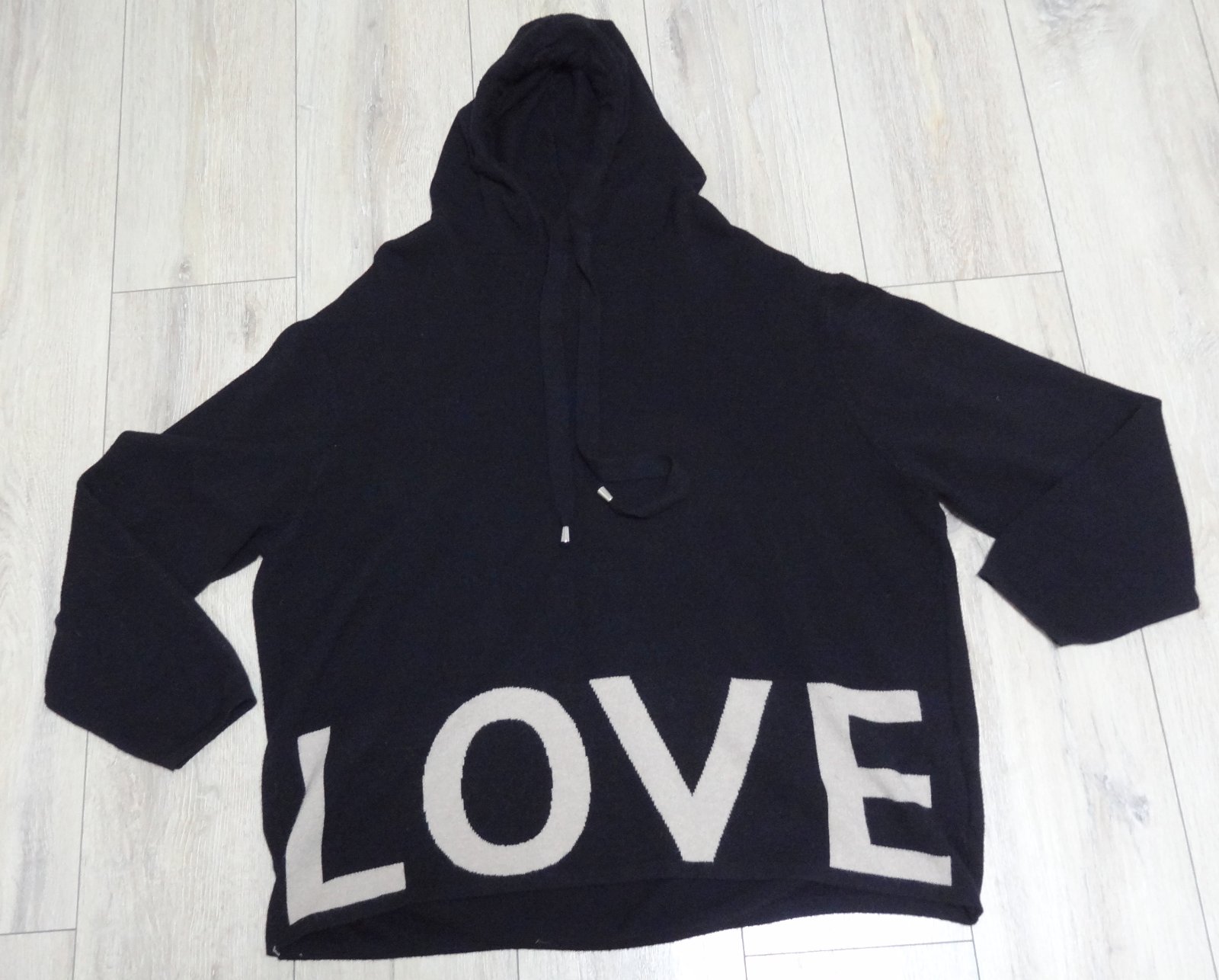 Dámska mikina pulover LOVE .... s kapucou ... výborný stav ... značka: TAKKO ... veľ. 54/56 .... dlžka 69 cm, šírka pod pazuchami 65 cm ... prispôsobí sa postave