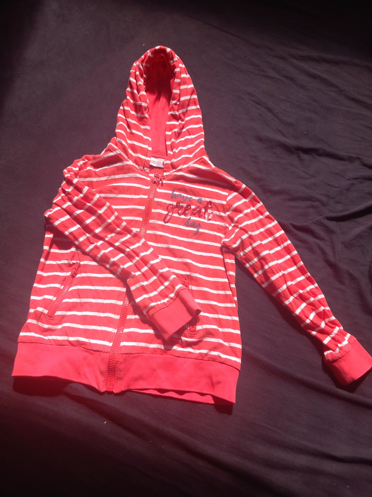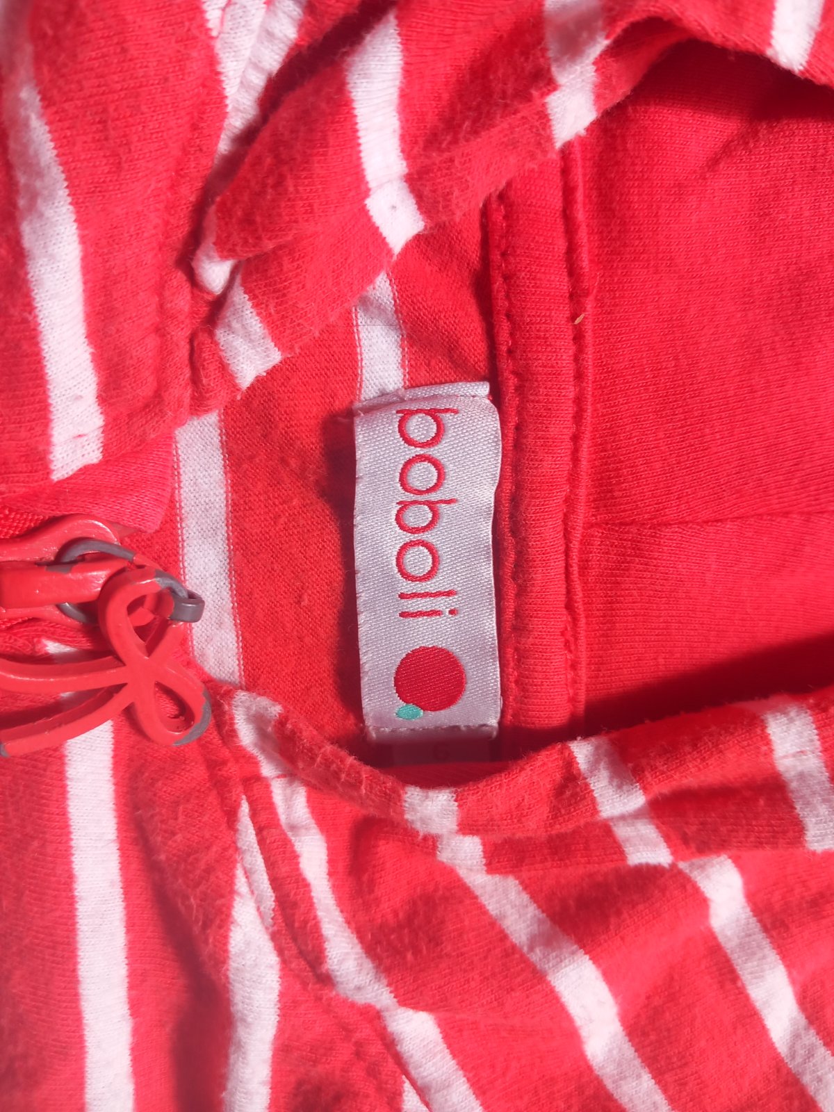 Červeno-biela tenka mikinka s kapucňou a krásnym zipsom,značka Boboli.