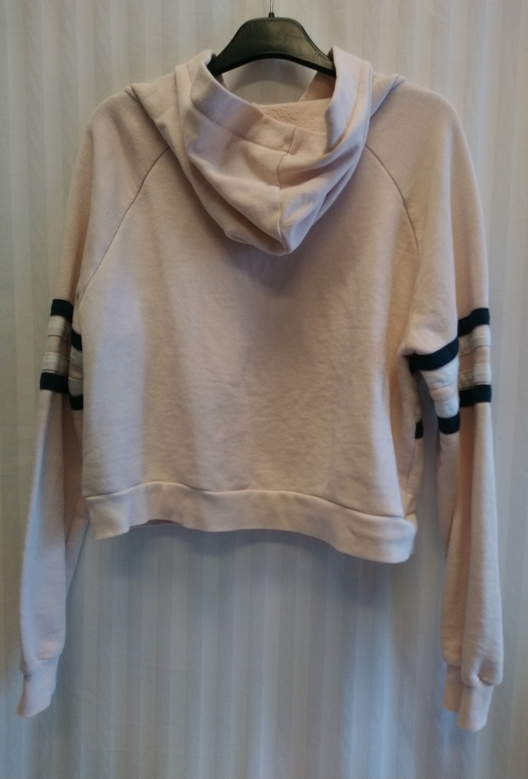 dámska svetlo ružová crop mikina s pásikmi s kapucňou,