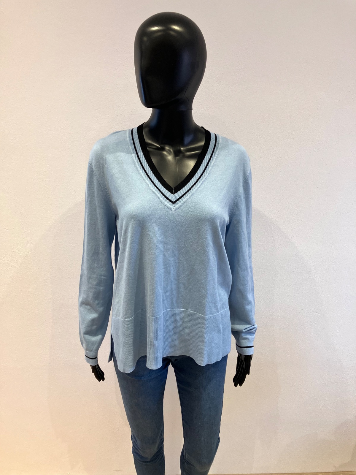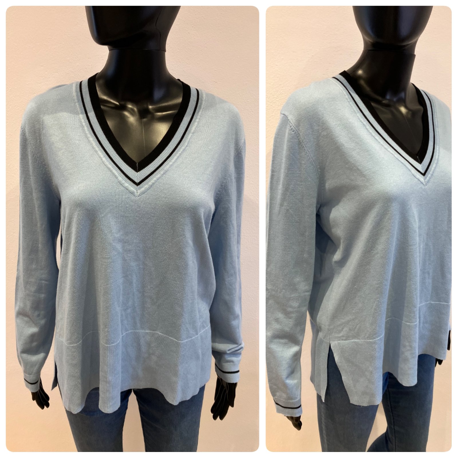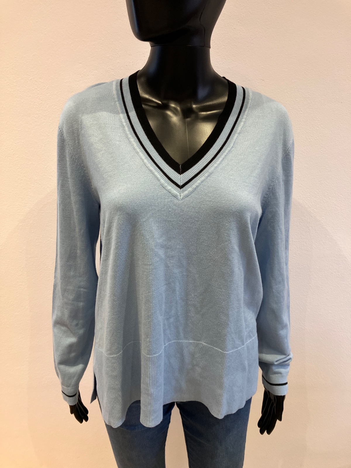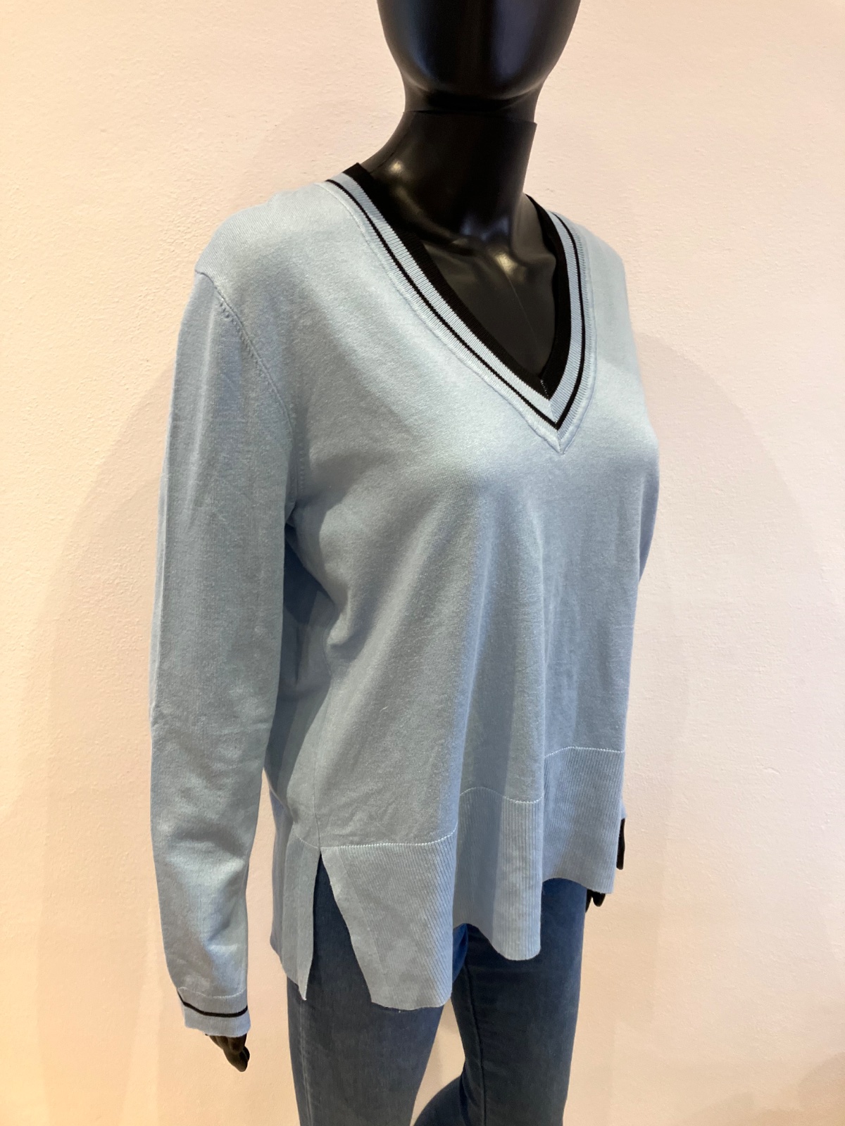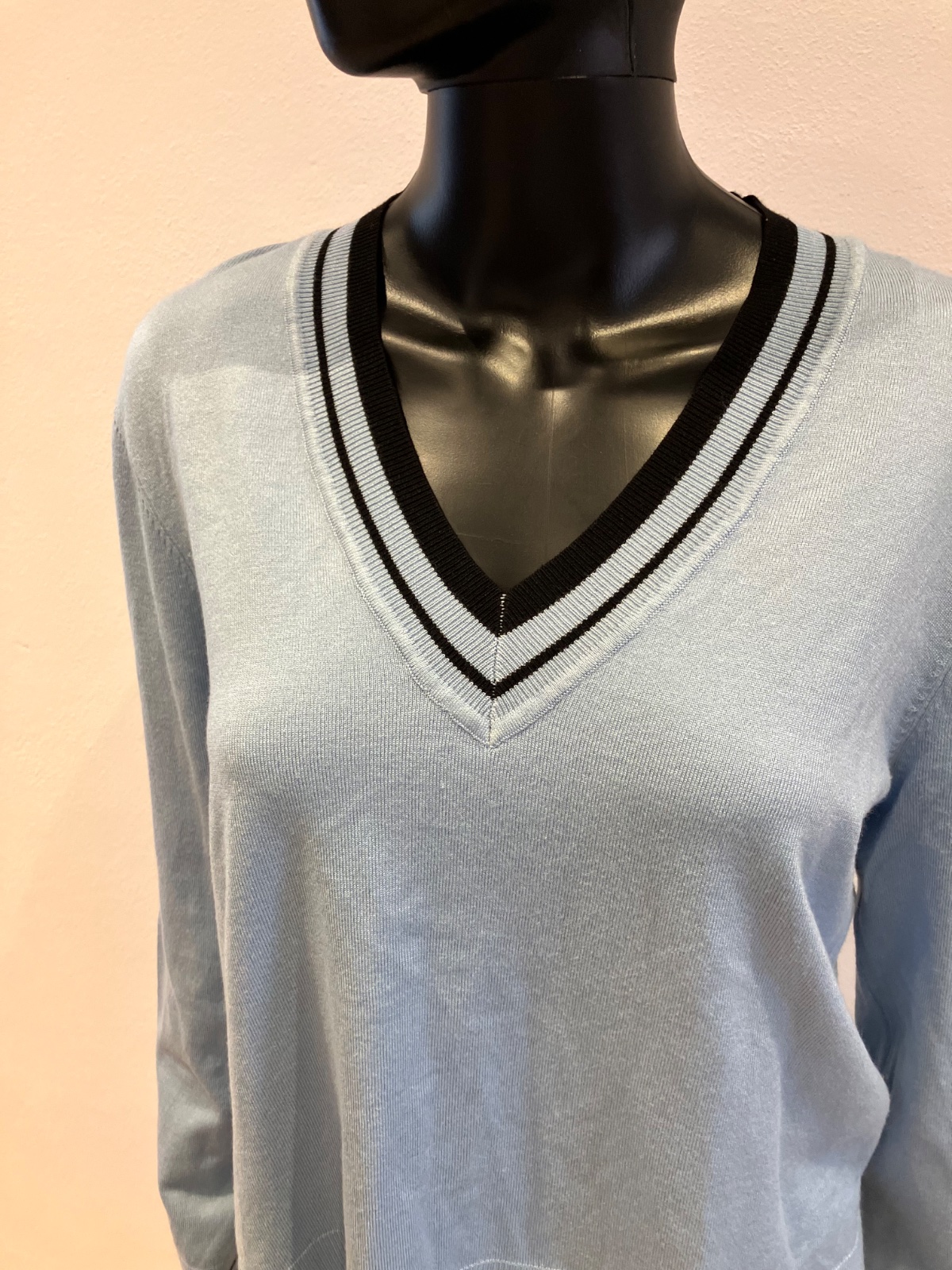 Dámsky sveter, véčkový výstrih, ležérny, elastický, materiál 80%viskóza 20%polyamid.