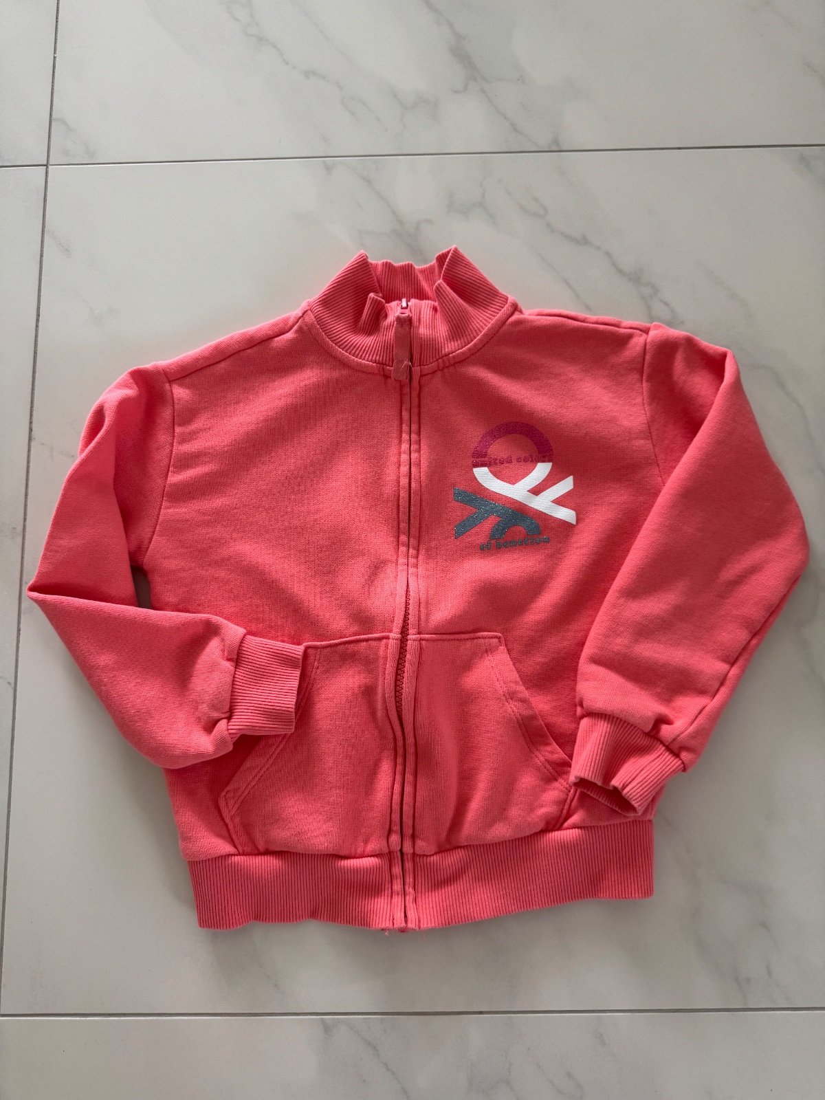 Predám oranžovú mikinu na zips značky Benetton vo veľkosti 130 (7 – 8 rokov).