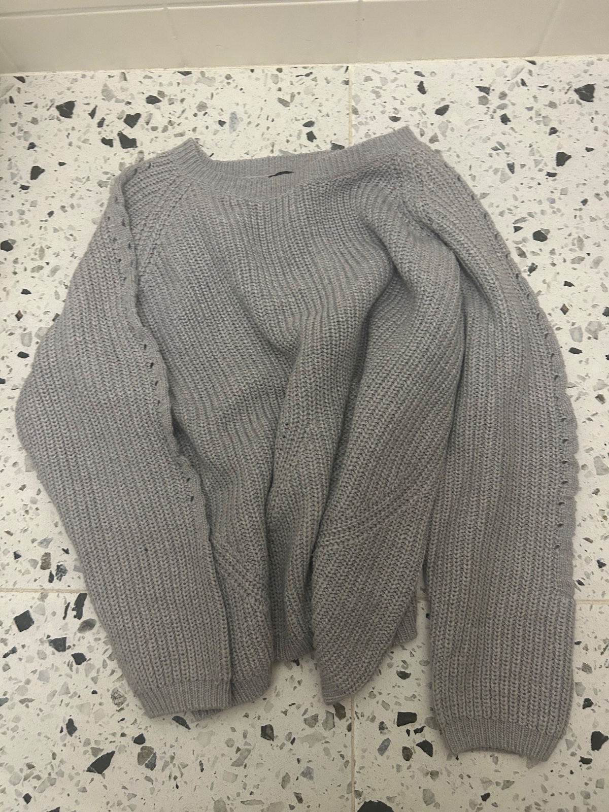 Sivy kvalitny sveter s aplikaciou na rukavoch, znacka Vero moda, velkost pisana XL ale sedi skor na L, rozmery na foto. Kupovany novy, obleceny par x, vyborny stav, nevynosim tak posuvam.