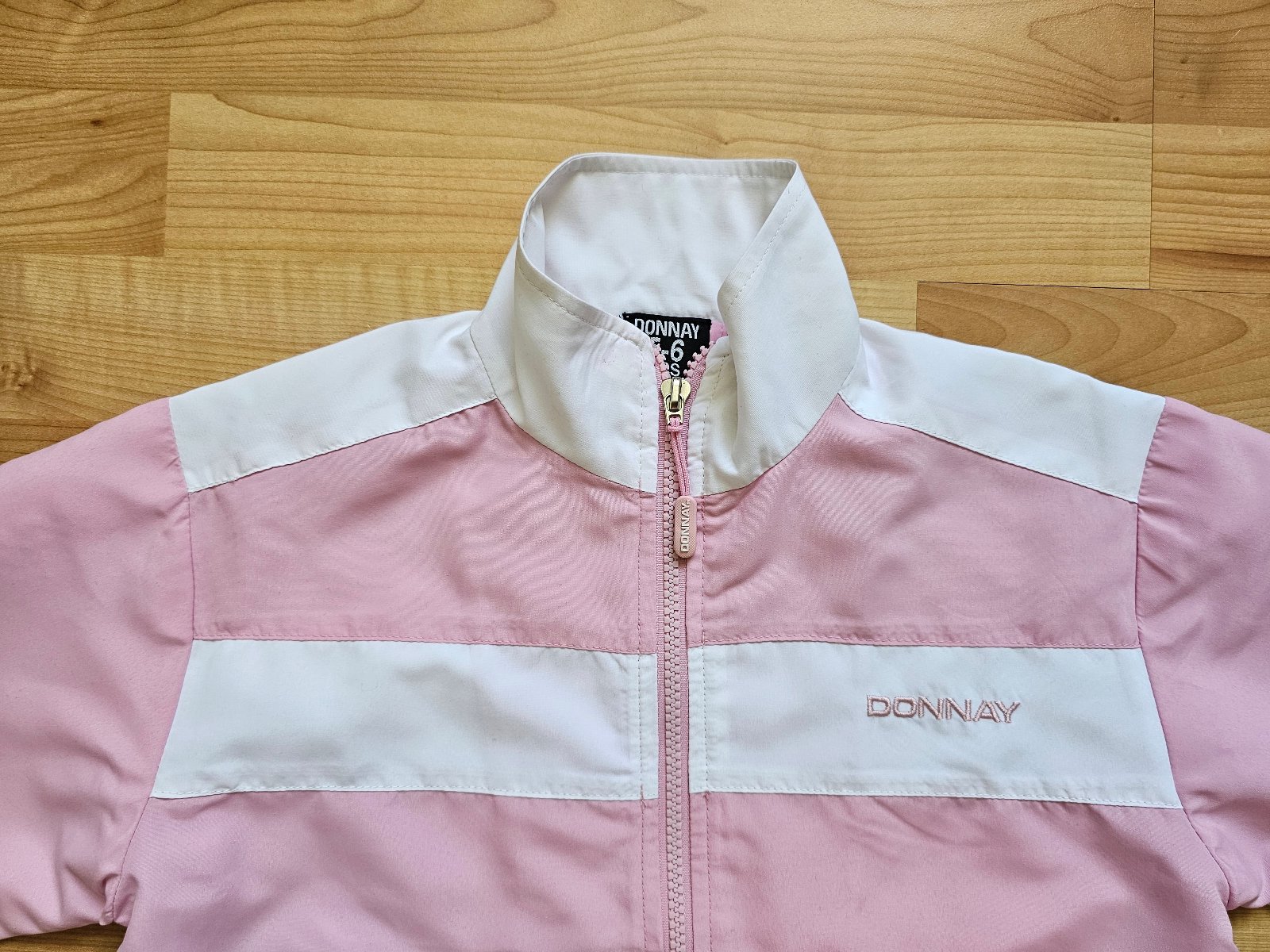 Ponúkam na predaj nenosenú mikinu zn.Donnay bledučko ružovej farby v kombinácií s bielou.Mikina je podšitá sieťkou,rovného strihu,kto by chcel tak na spodu je miesto na navlečenie gumičky alebo šnúrky.