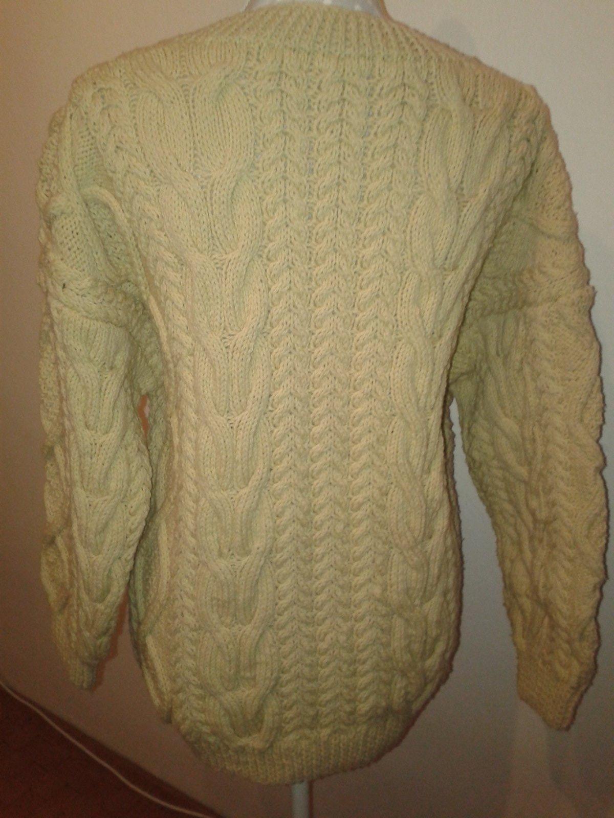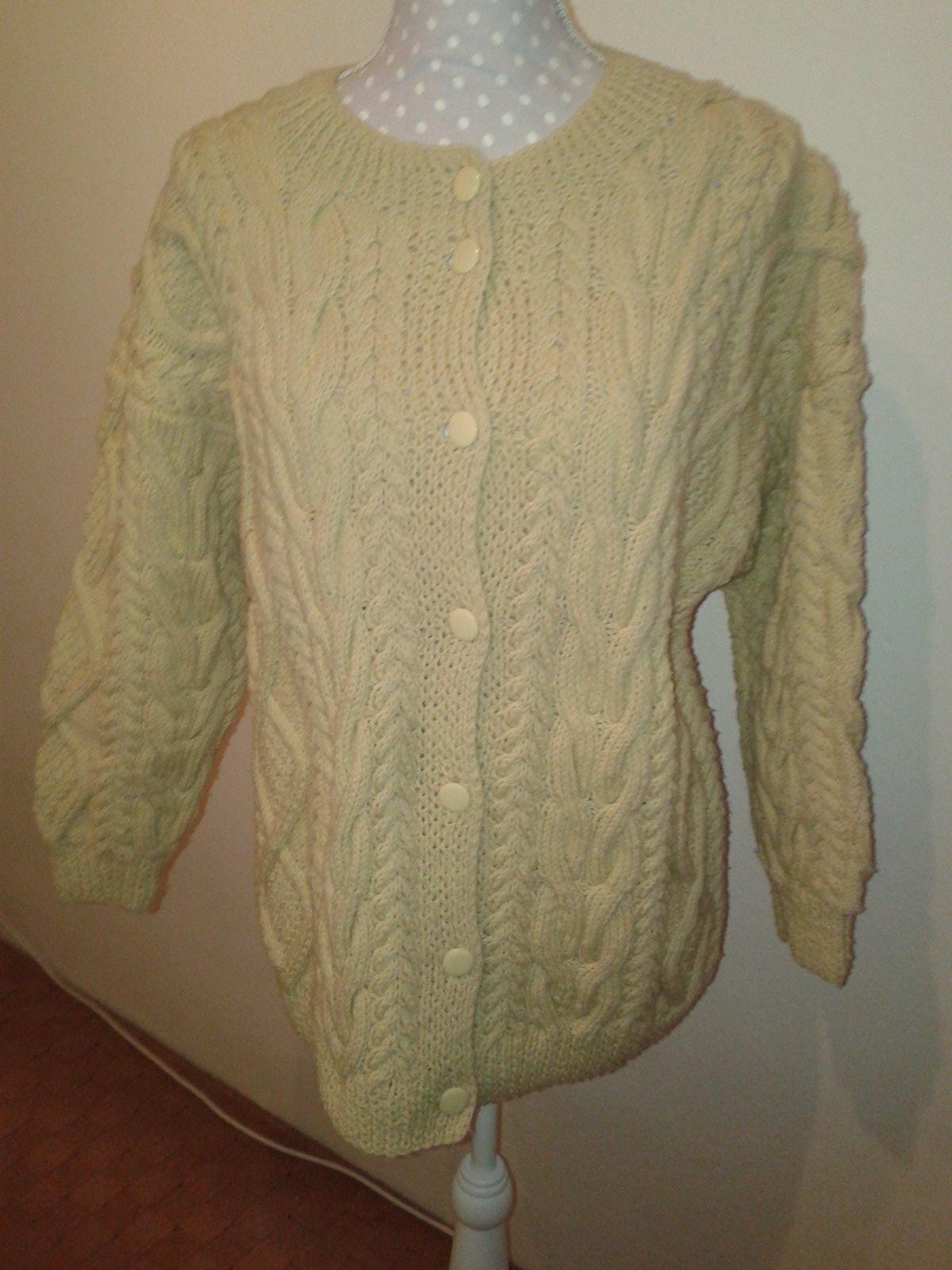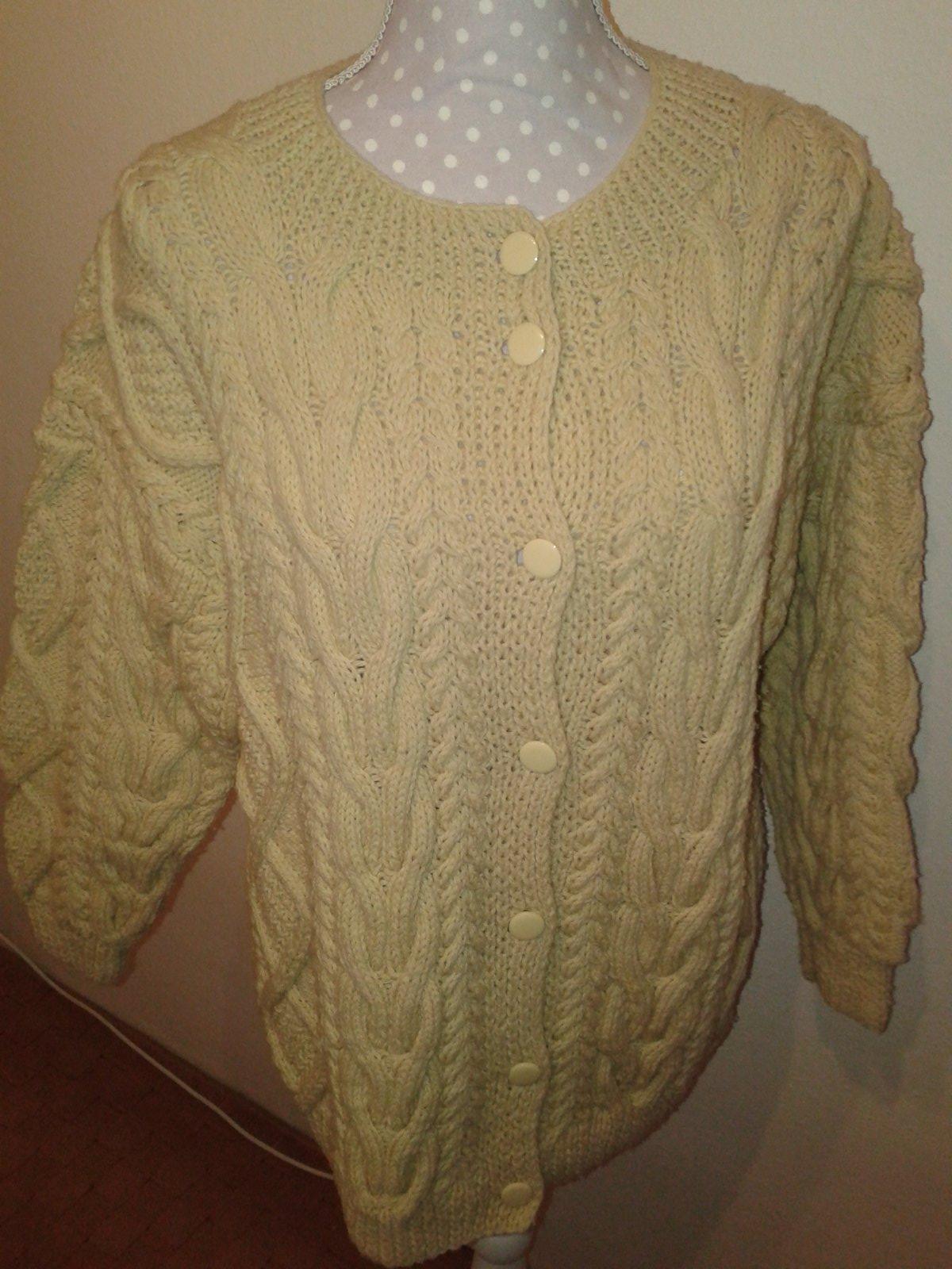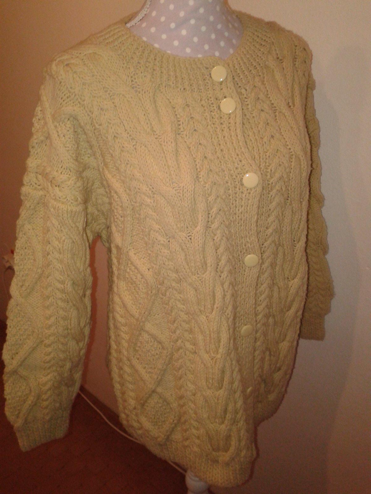 nenosený, ručne pletený, materiál čistá vlna, dlžka 65cm, prsia 54x2 v kľude, rukáv od krku 68..