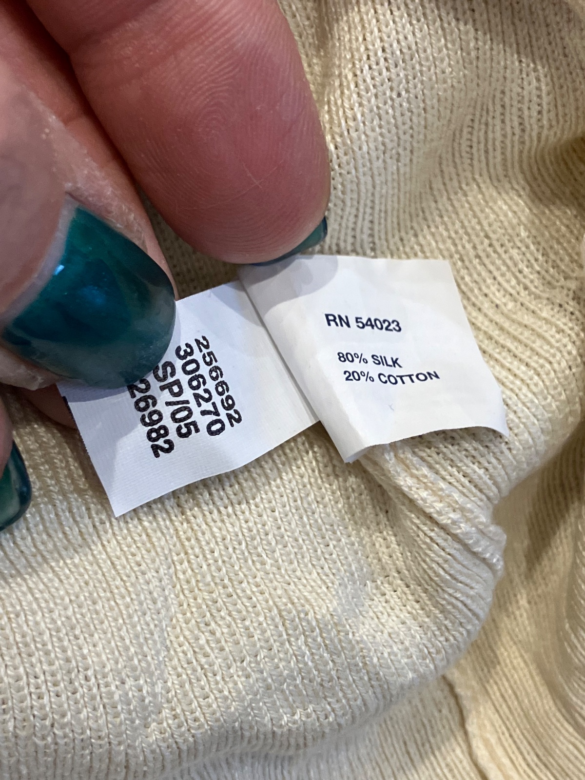 ROZMERY: dĺžka: 61cm, od pazuchy dĺžka dole: 38,5cm, dĺžka rukáv od krku: 74cm, dĺžka rukáv: 67cm, pod pazuchami meraná šírka: 2x53cm - 2x77cm.