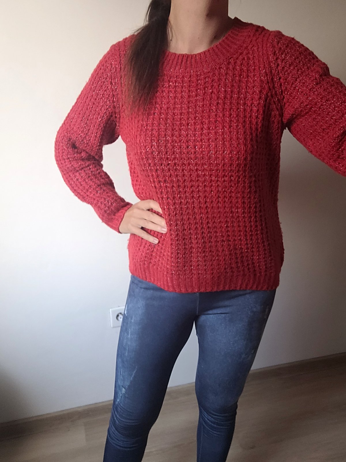 Predám pekný červený sveter, veľkosť L, cena 5 eur.