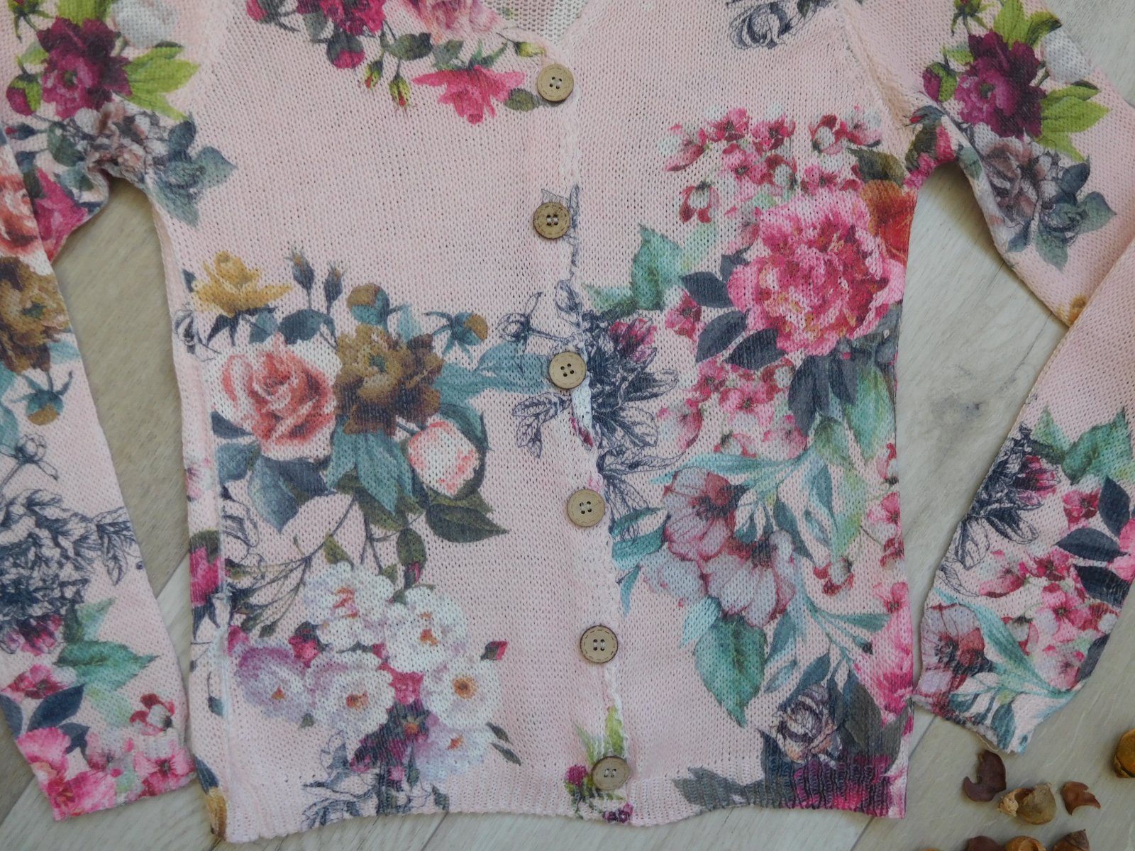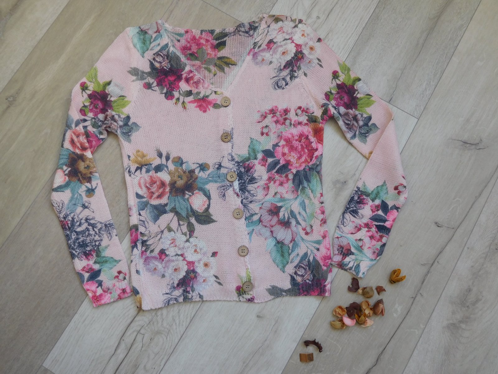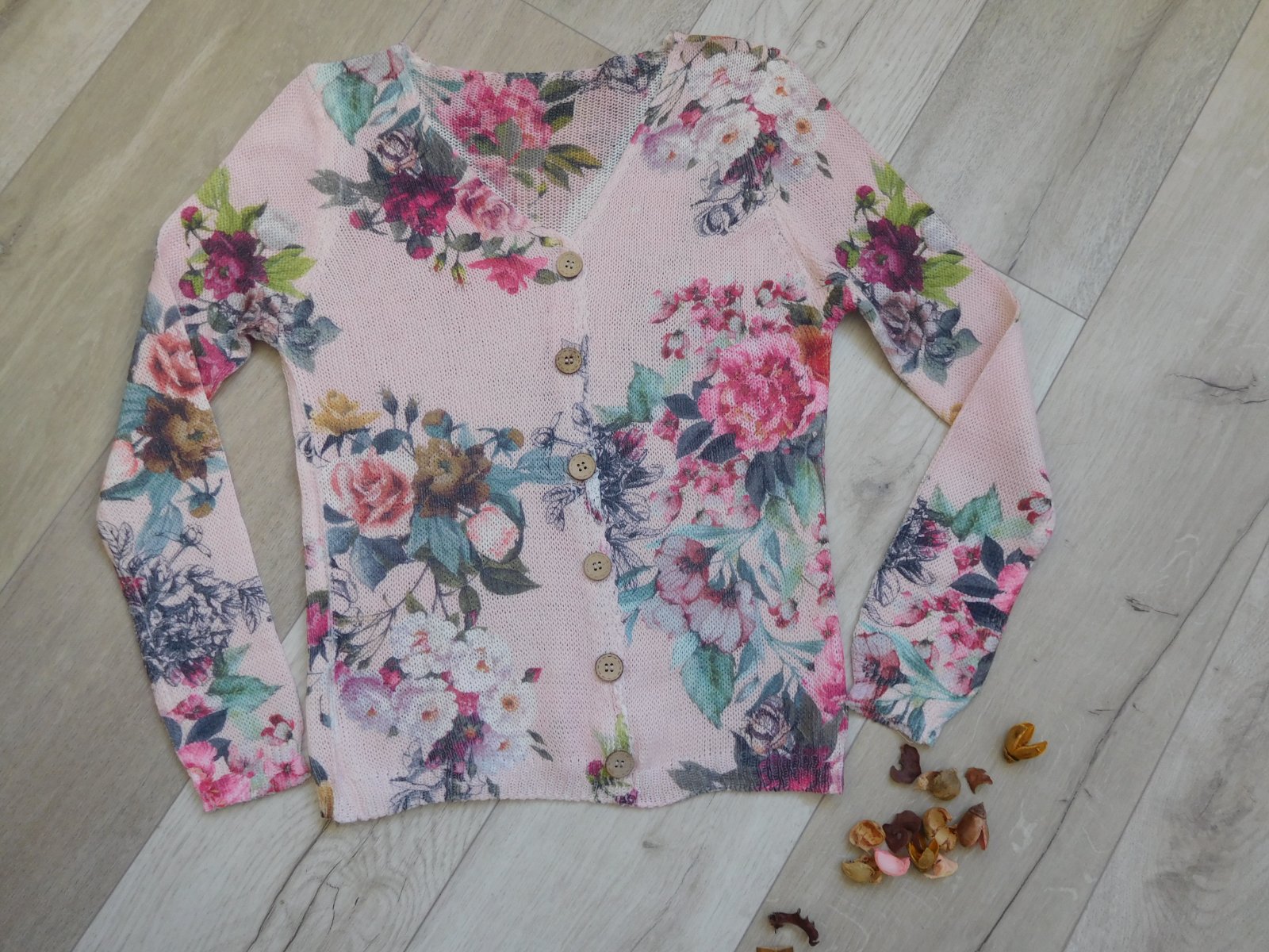Ponúkam na predaj pulovrík bavlnený vzor kvietky o zapínaním na gombíky, pulovrík je v TOP TOP stave, veľmi dobre nositeľný ,veľmi dobre ošetrovateľný,