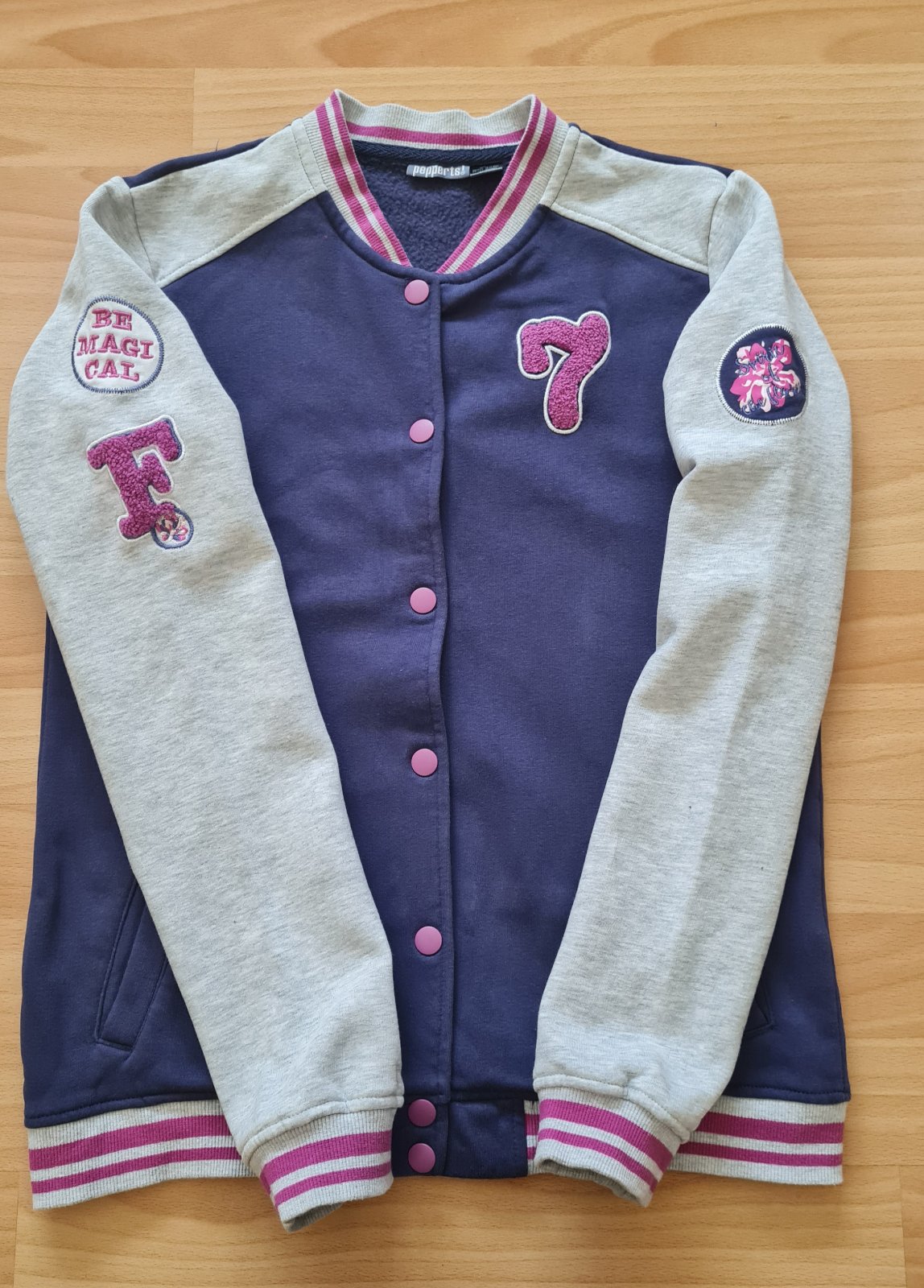 Predám mikinu veľkosť 158/164. TOP stav. Zapínanie na cvoky. Dĺžka 60 cm, šírka 46 cm, rukáv 50 cm.