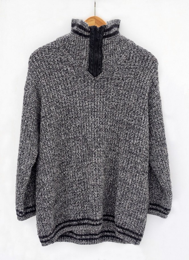 Predám teplý pulóver čierno-bielej farby - vizuálne vyzerá ako šedý.