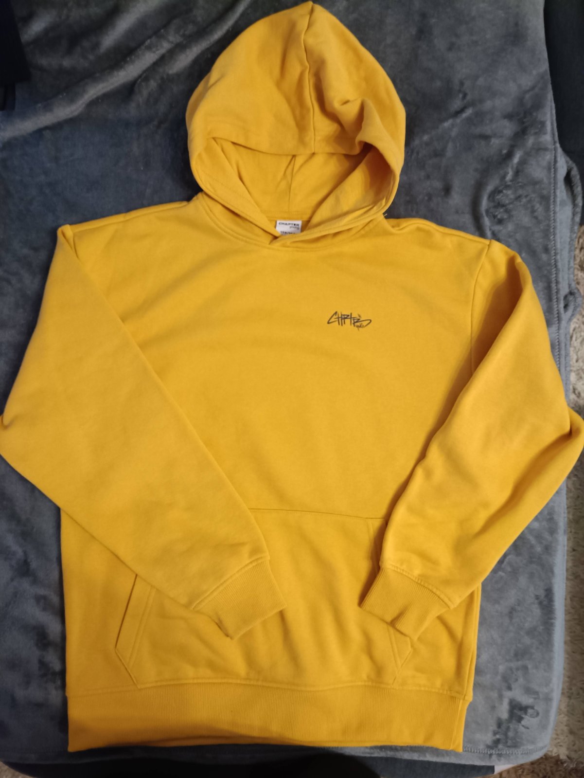 nenosená mikina, len vypratá, 158/164, farba je niečo medzi žltou a horčicovou,