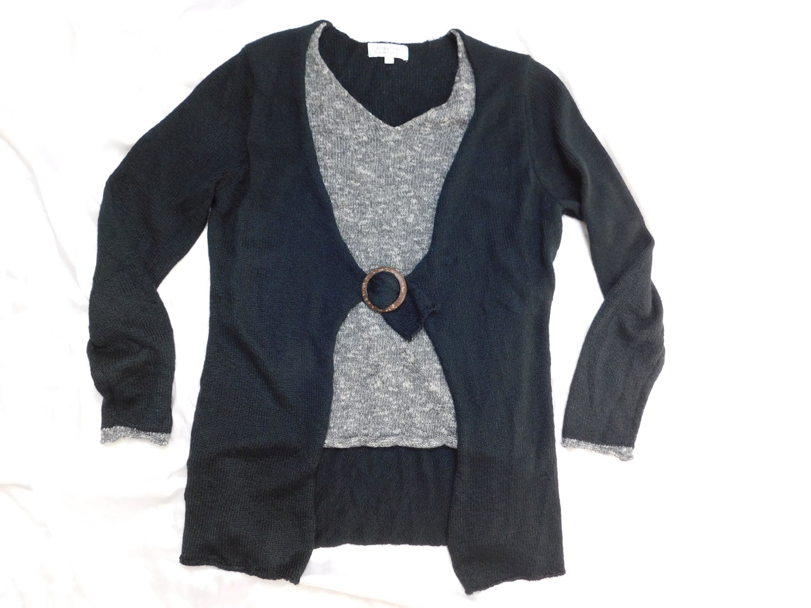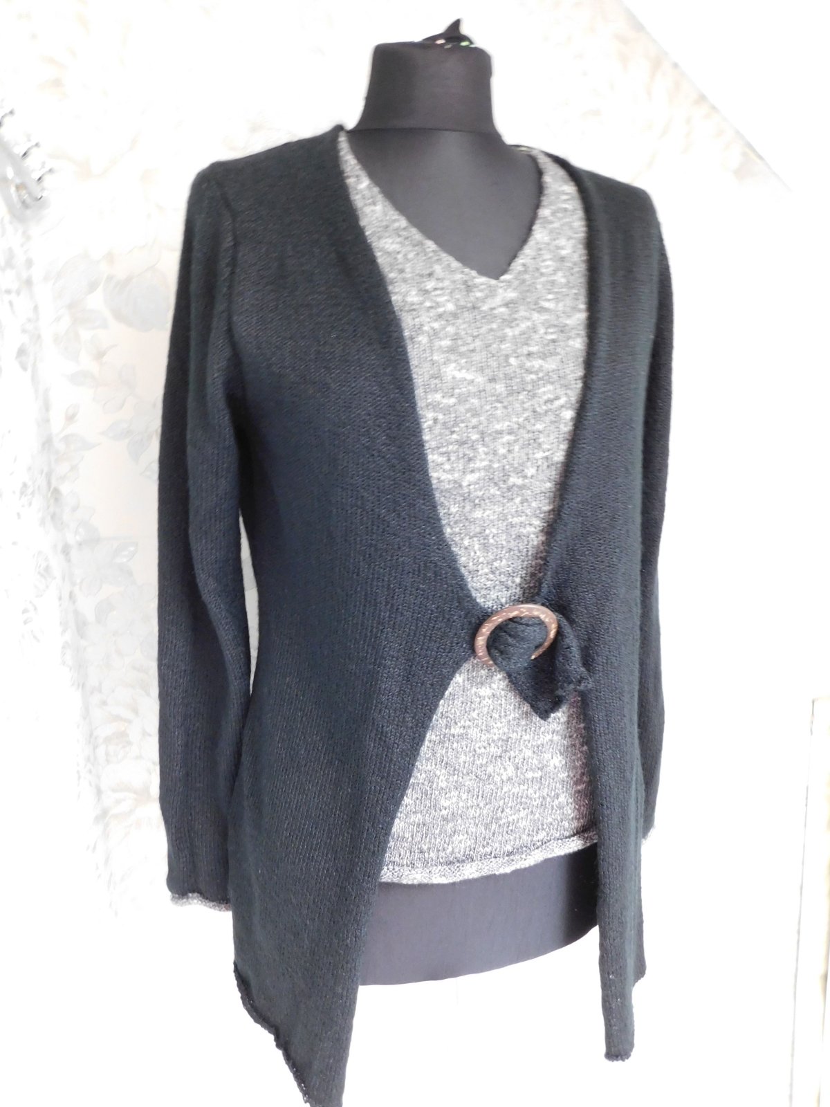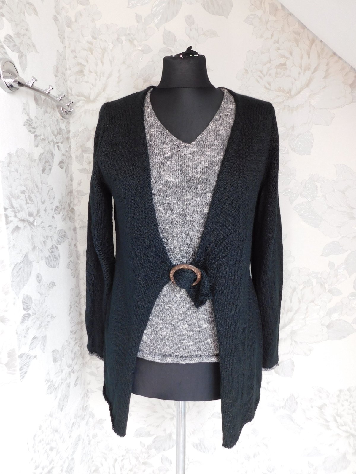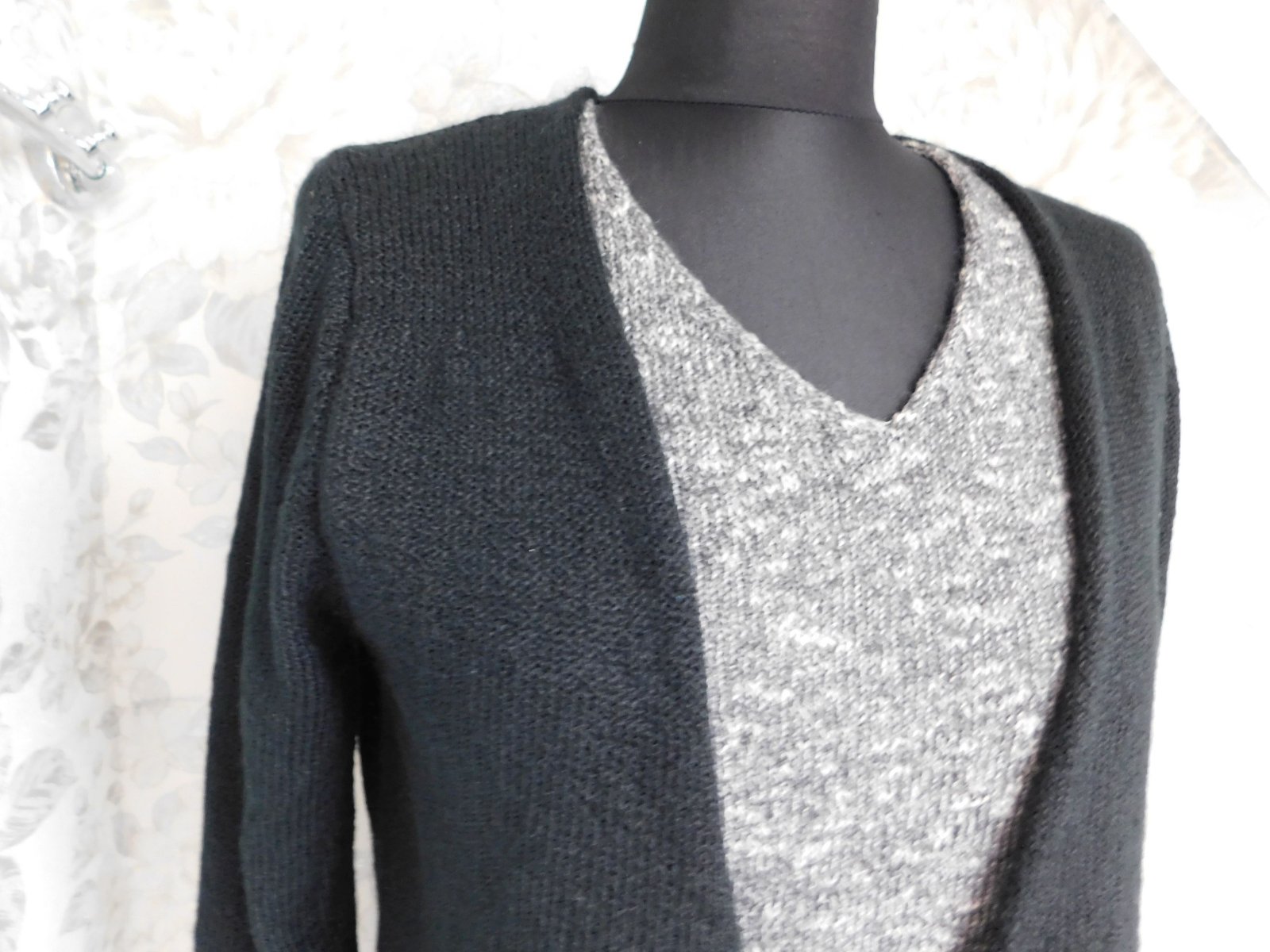 Pekny kvalitny pulover,dvojity vzhlad,čierno/šedej farby.81%acryl,14%nylon,4%cotton,1=polyester.super stav.se25