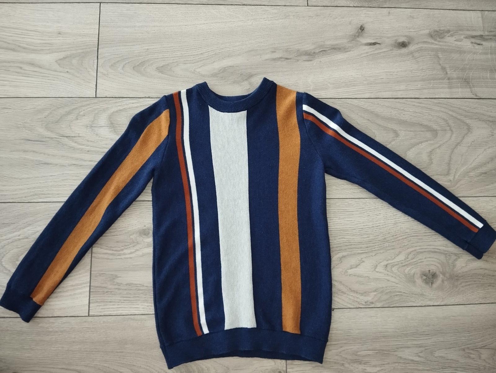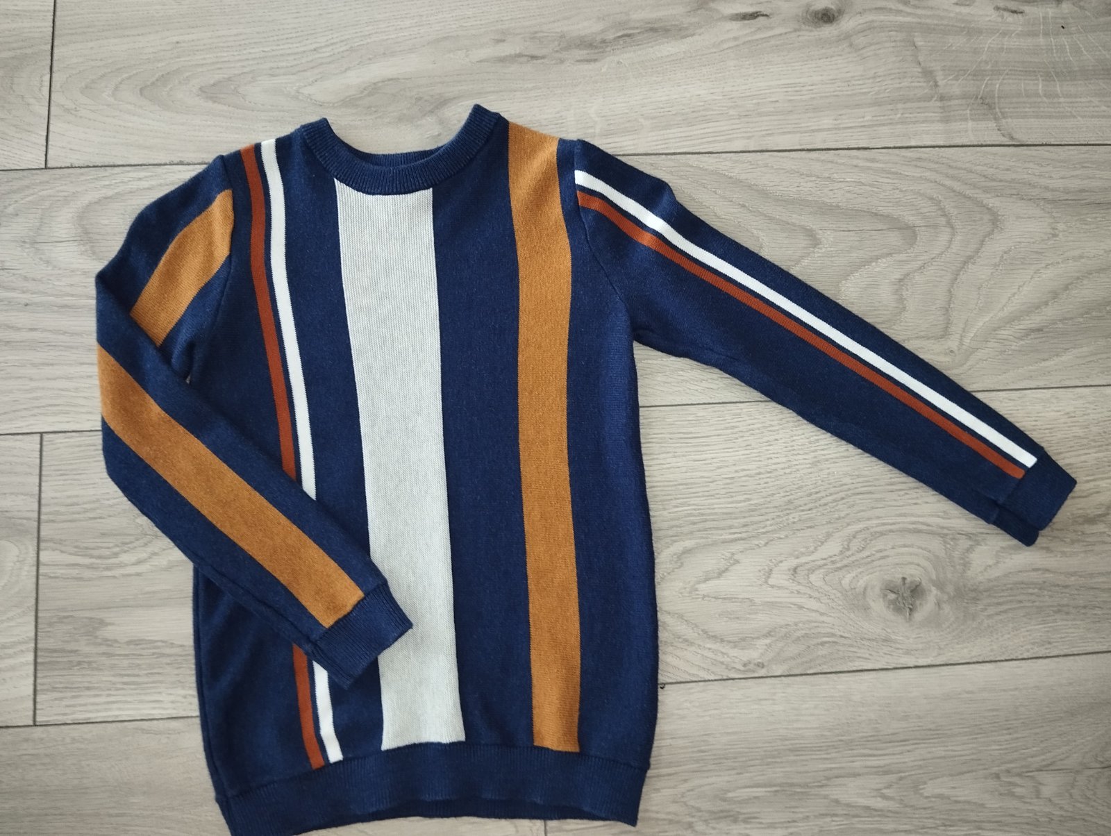 Pulover (s kosielkou len hore) elegantný veľkosť 116, tmavomodrej farby, značka f&f, pekný stav dlzka od ramena dolu 46cm,šírka od jednej podpazuchy po druhu 2x36cm,, rukav od podpazuchy 35cm,rukav...