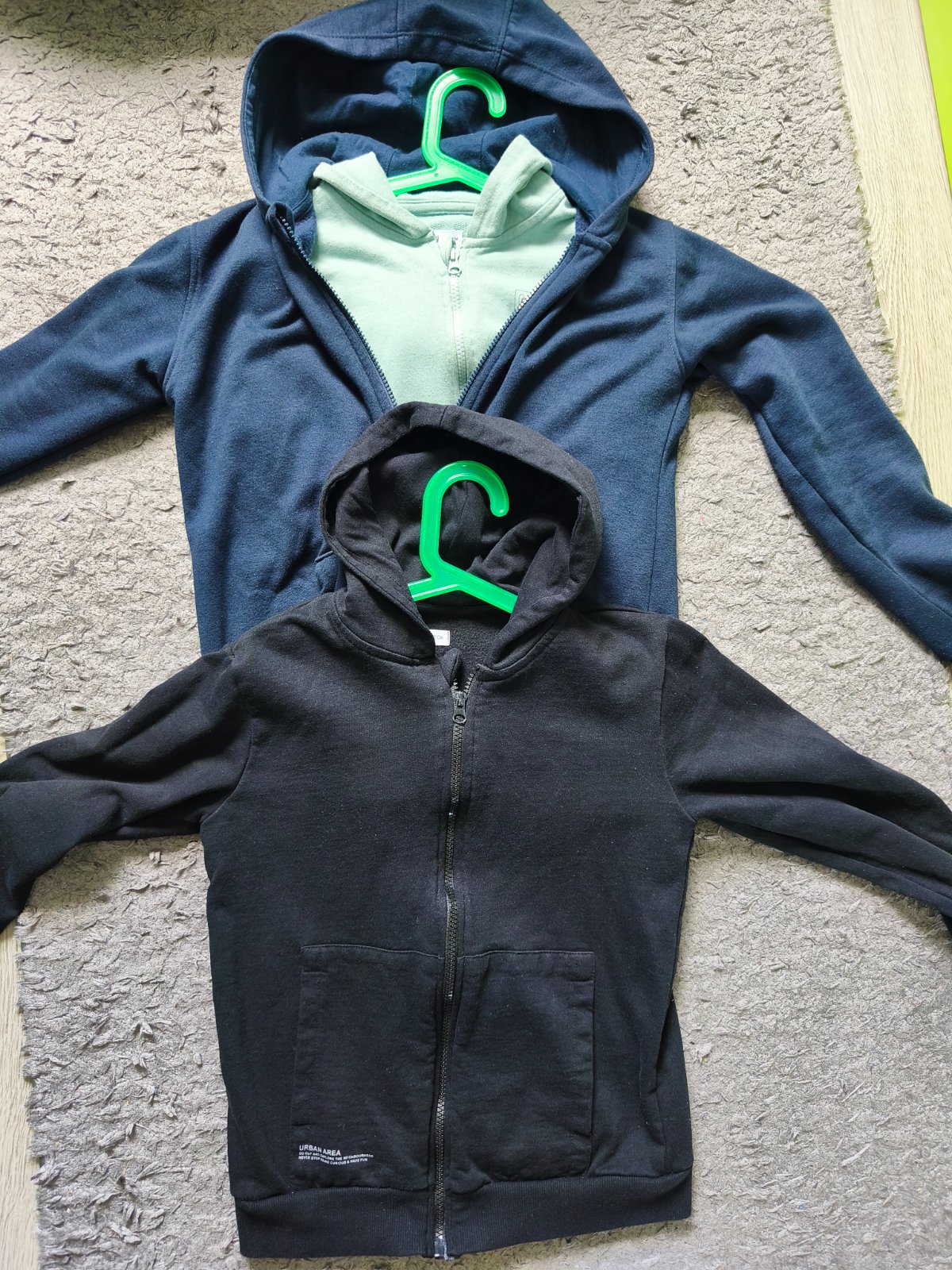 3x mikina Sinsay veľkosť 152, čierna a modrá bez poškodení, zelená zašité dierky pri kapsách...cena za všetky