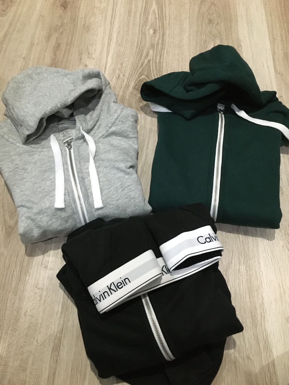 Predam max 3x oblecene calvin klein mikiny, velk.S. Sivu som odmerala, prsia 47,5 cm, dl 58 cm.Cena za kus 45€.