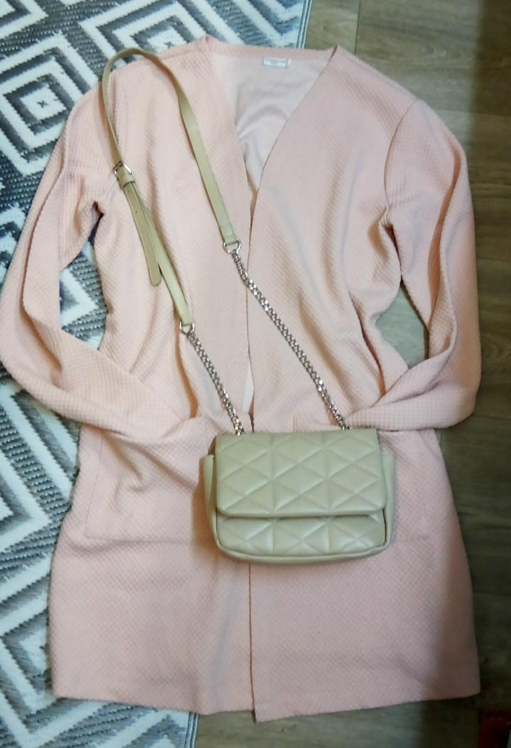 výborný nosený stav, bez poškodenia, pasuje k čomukoľvek asi aj k sukni aj legínam či džínsom či šatám :-), príjemný má 2 vačky, zaujímavý je štruktúrou pozri detail fotku