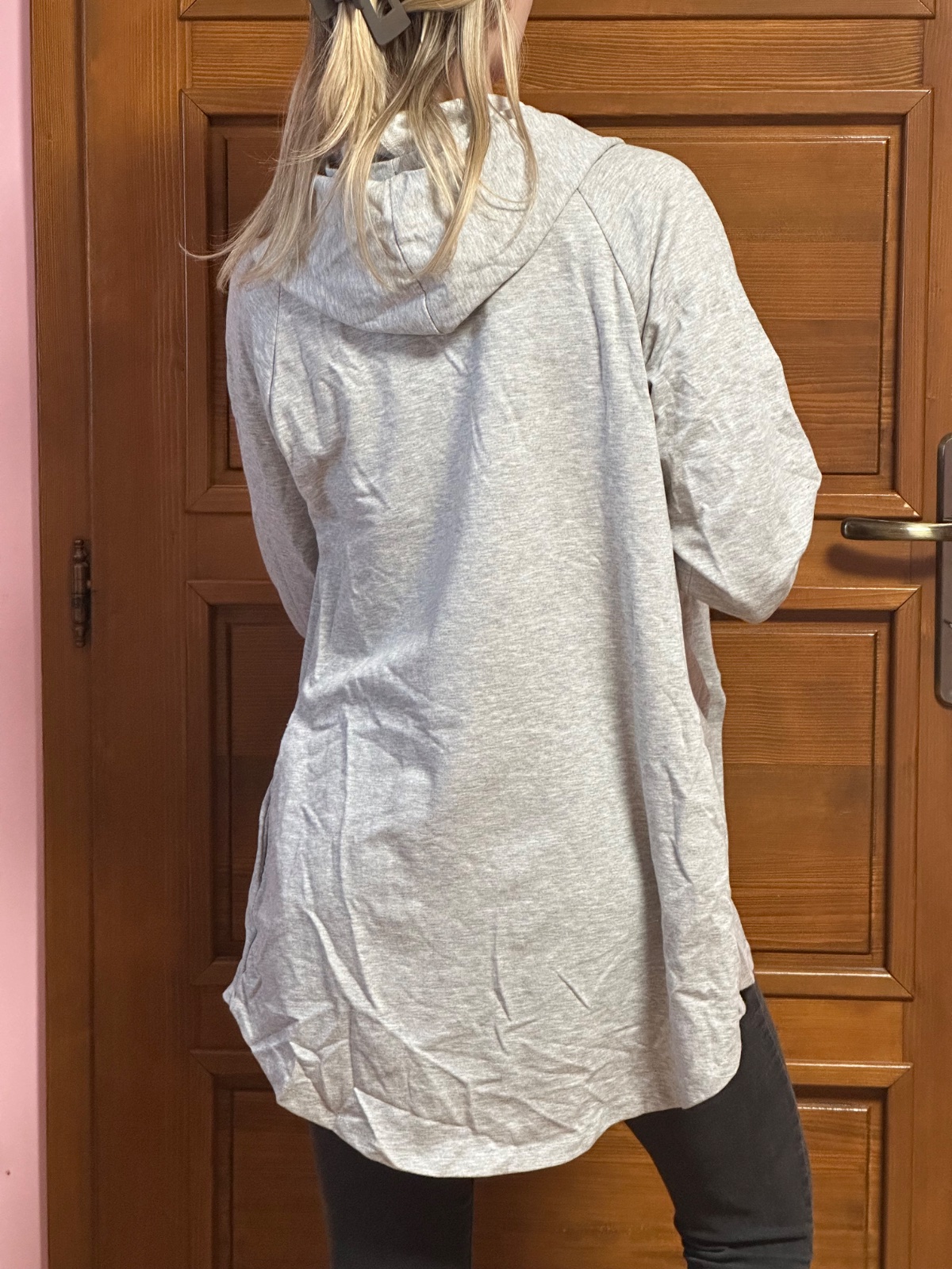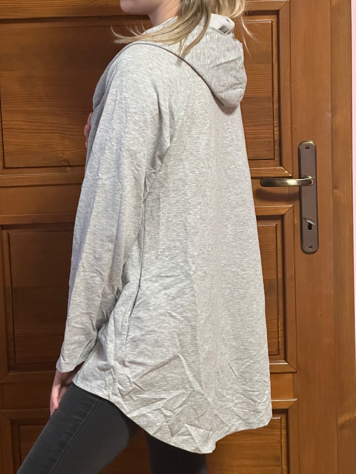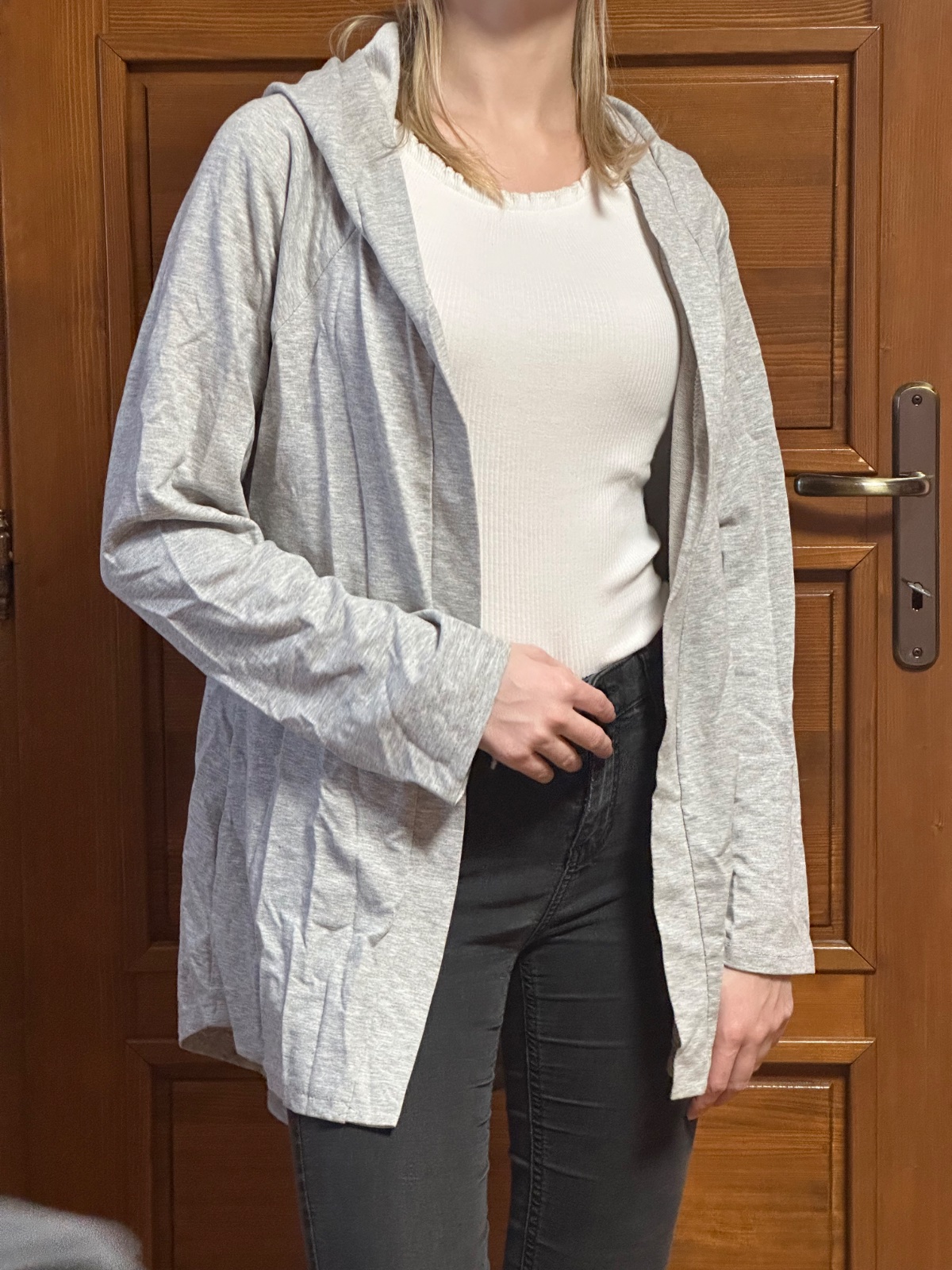 Kardigán má dlhší strih, krásne padne na postave a je veľmi pohodlný na každodenné nosenie. Vďaka tomu, že sa nezapína, je veľkosť flexibilná – sadne od XS po M.