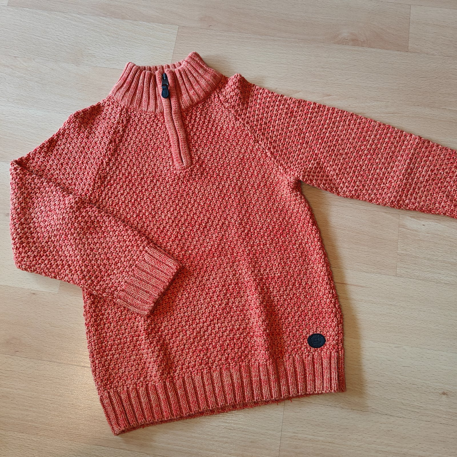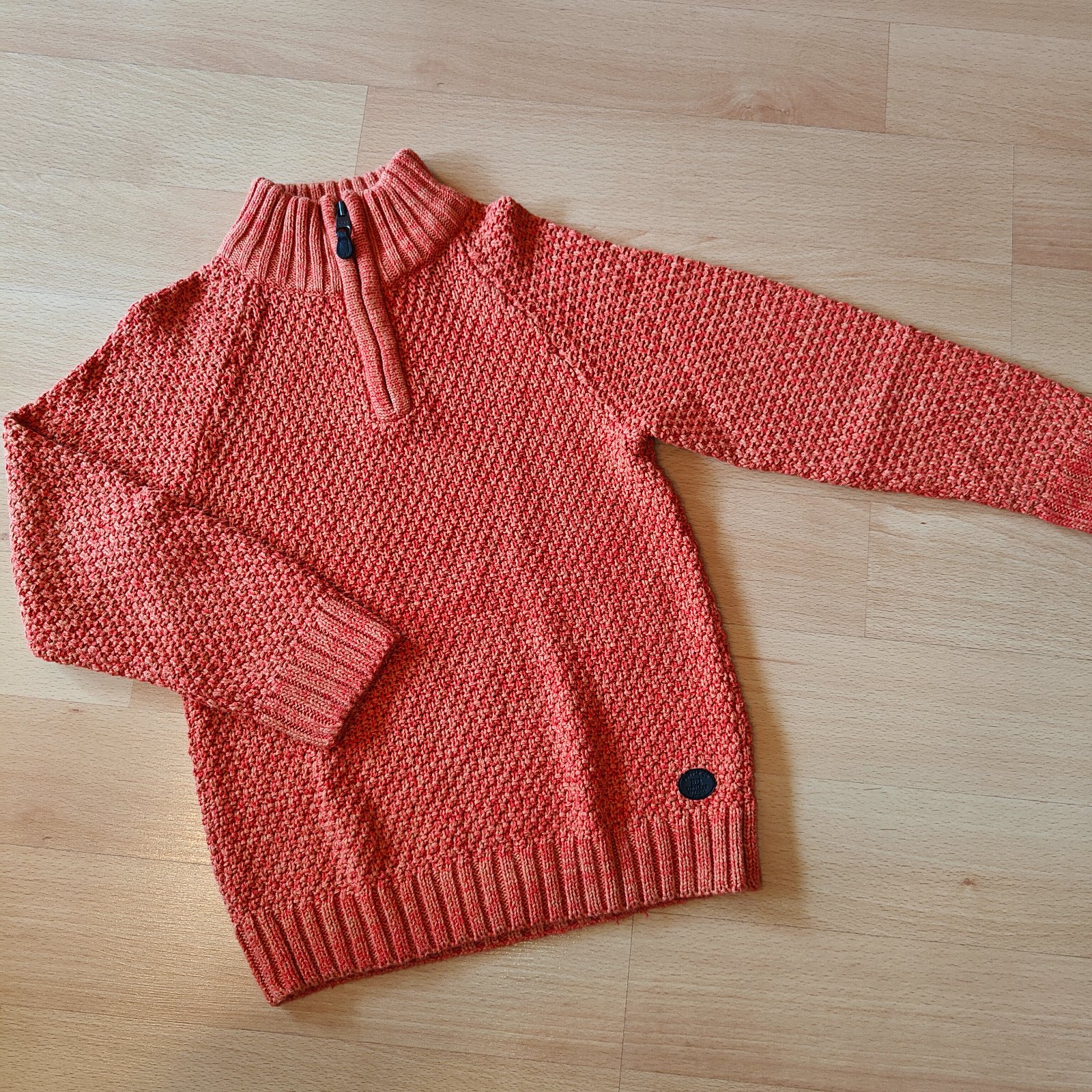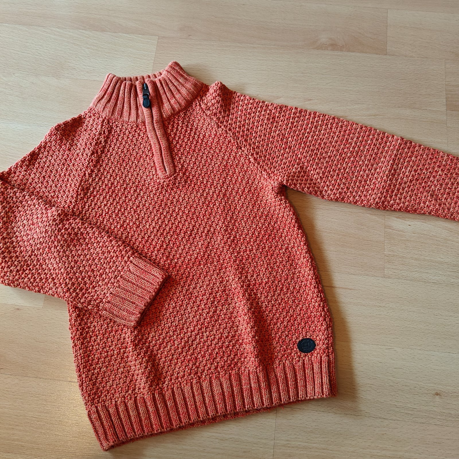 Teplý, kvalitný oranžovy sveter cez hlavu, so zipsom pod bradou.Velkost 122/128.Cena 12,-€.Preferujem osobný odber, ale pošlem aj poštou po prevode.