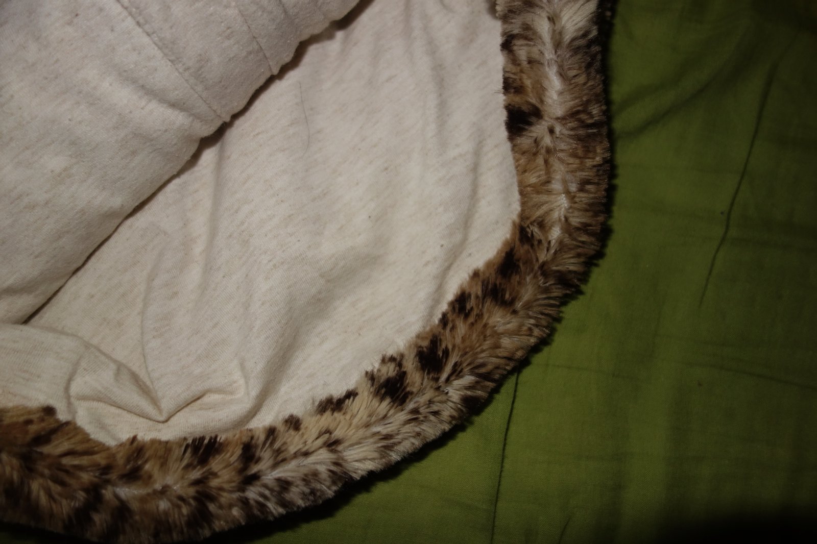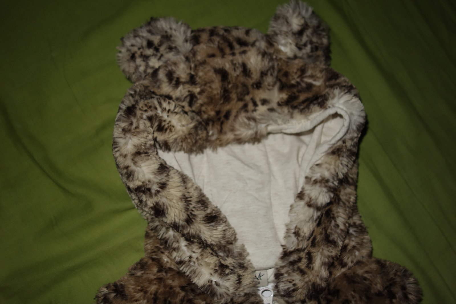 Krasna leopardia kozusinkova vesticka vo velmi dobrom stave. Je z umelej kozusinky.