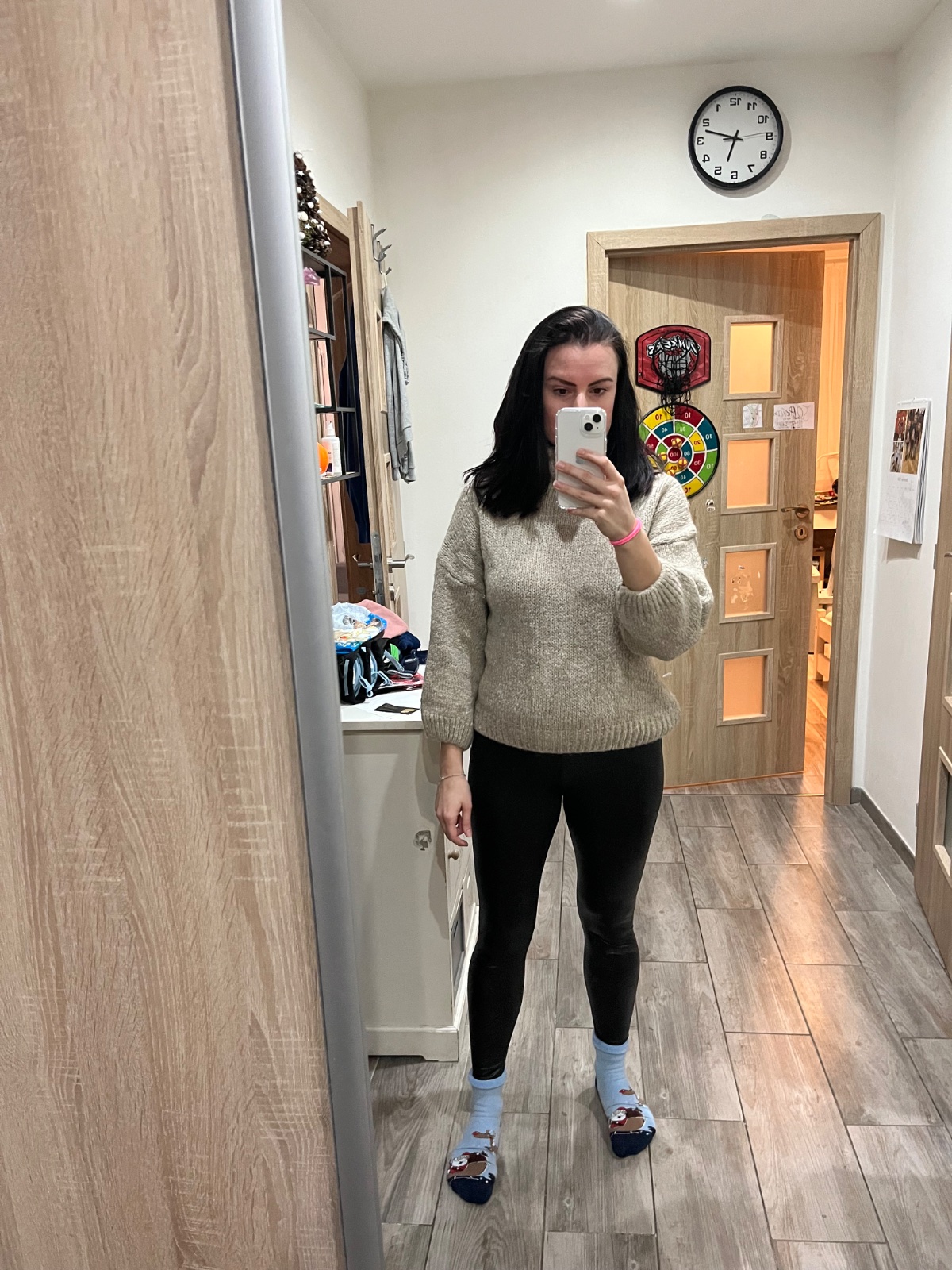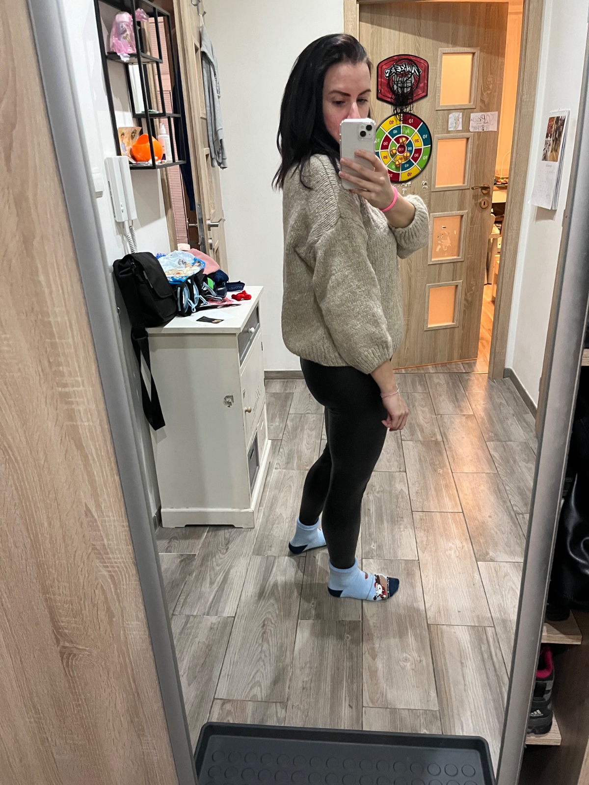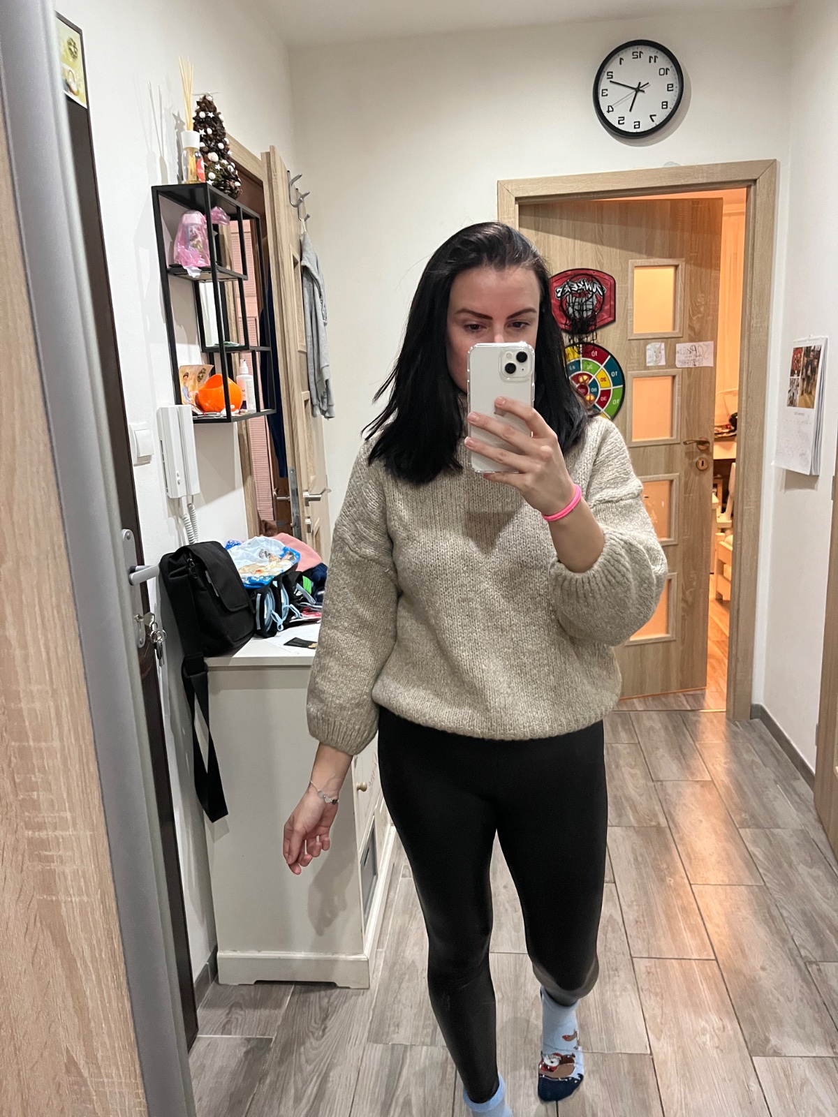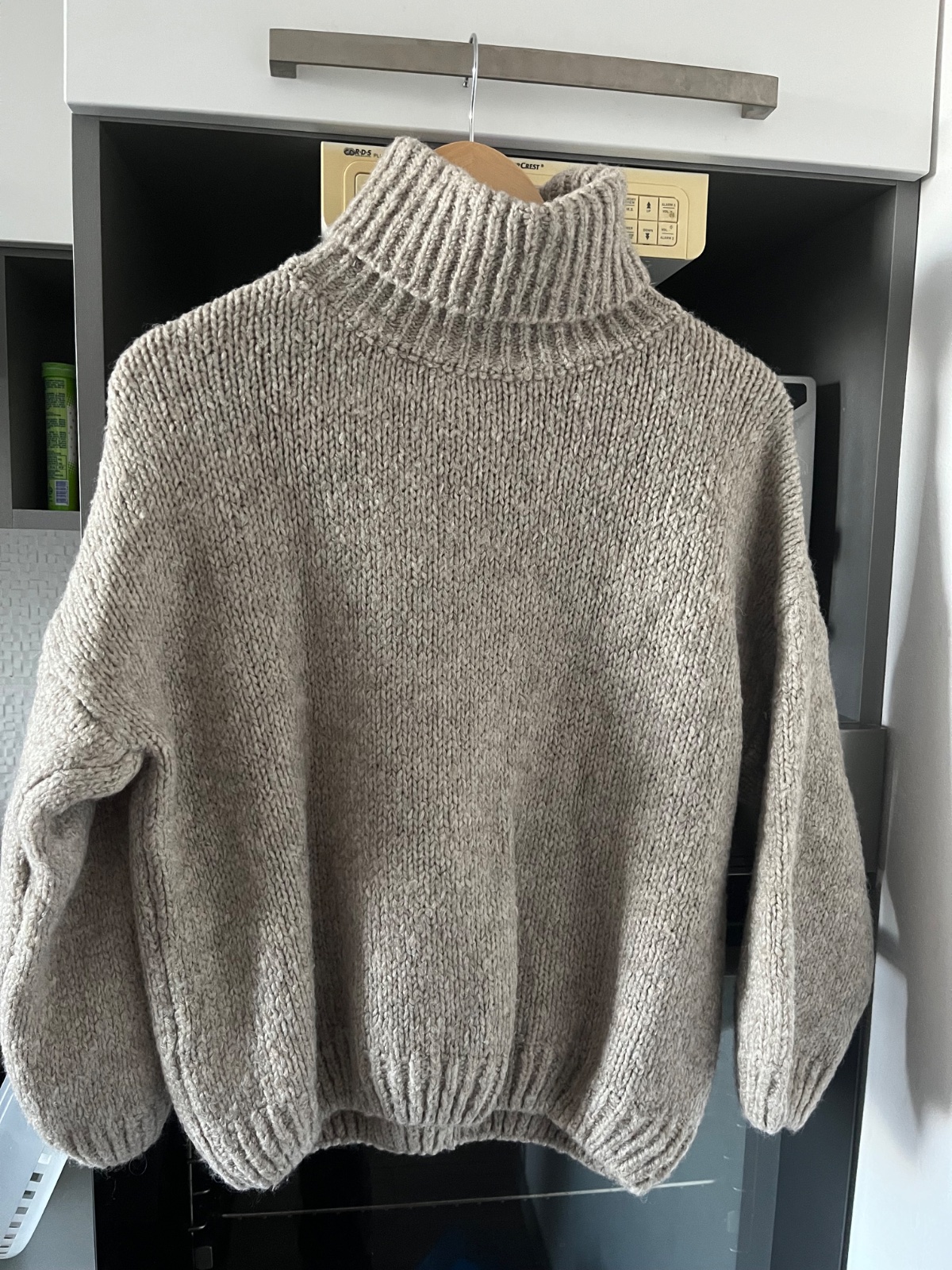 Pekný odtieň akoby piesková farba. Mala som ho 1x dostala som podobný na Vianoce tak len preto posúvam. Rukávy su trocha kratšie. Obsahuje vlnu, nehryzie ale nie je ani úplne jemný ten materiál. Dole sa zužuje takže pekne drží tvar.