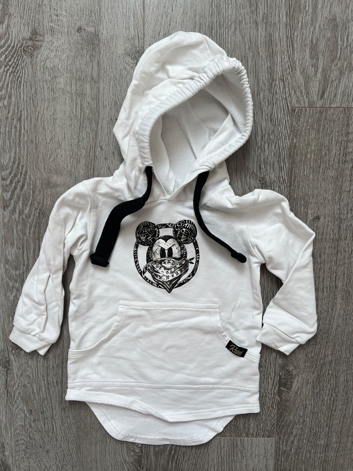 Nosena,ma zmolky,bez poskodeni Klokanie vrecka Velkost pise kids XL,nasa cca 12-14 romov, 60 bavlna,40 polyester Rozmery: Celkova dlzka v strede 55cm,sirka pod pazuchami 43 cm, Rukav vnutorny 51cm,...