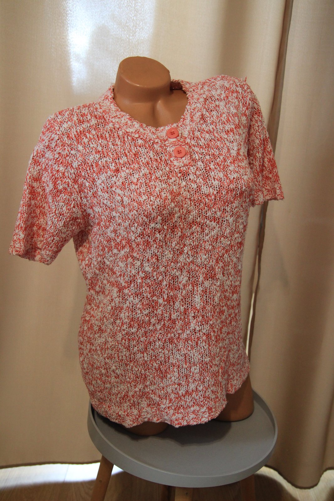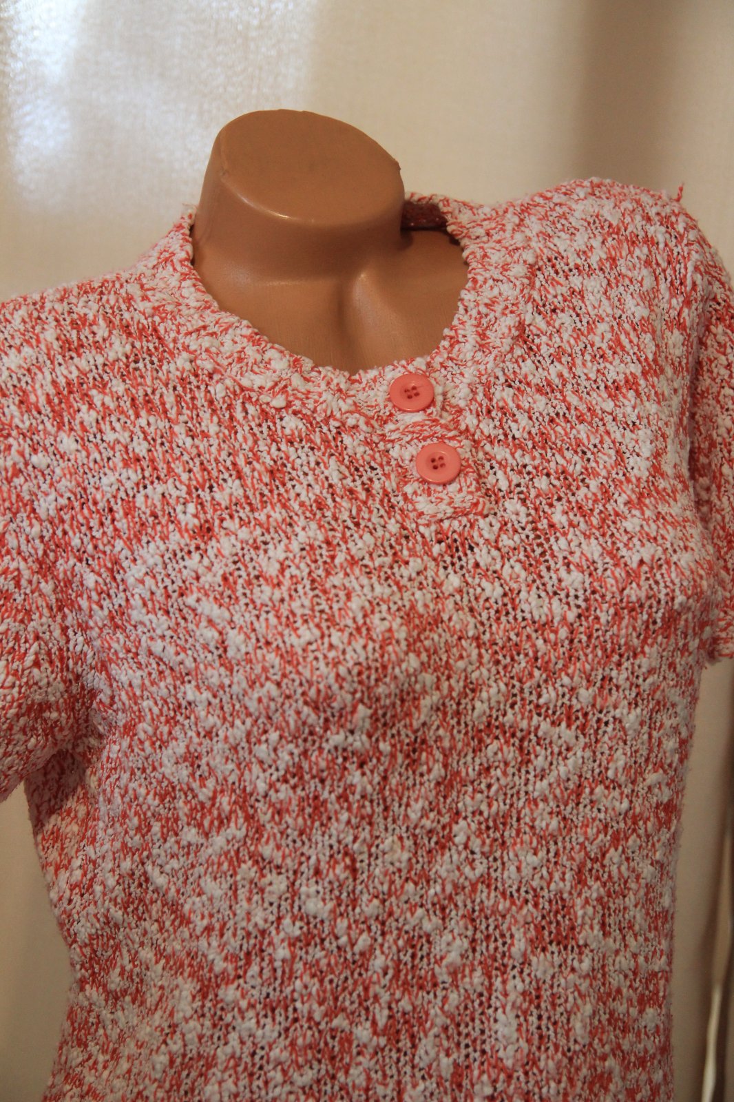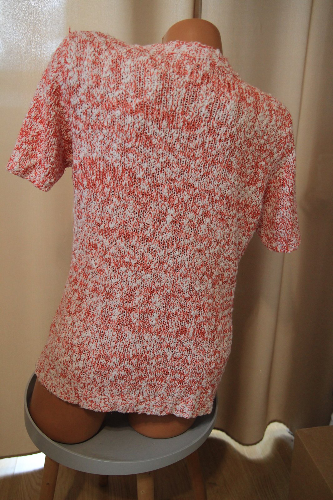 Červeno biely pletený sveter s krátkymi rukávmi, veľkosť L/XL.